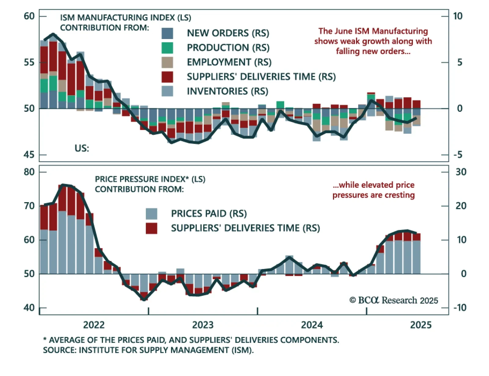 ISM Services data confirm slowing growth and cooling inflation, reinforcing a defensive allocation stance. The index rose slightly to 50.8 in June from 49.9 in May, with new orders rebounding into expansion at 51.3. However, the…