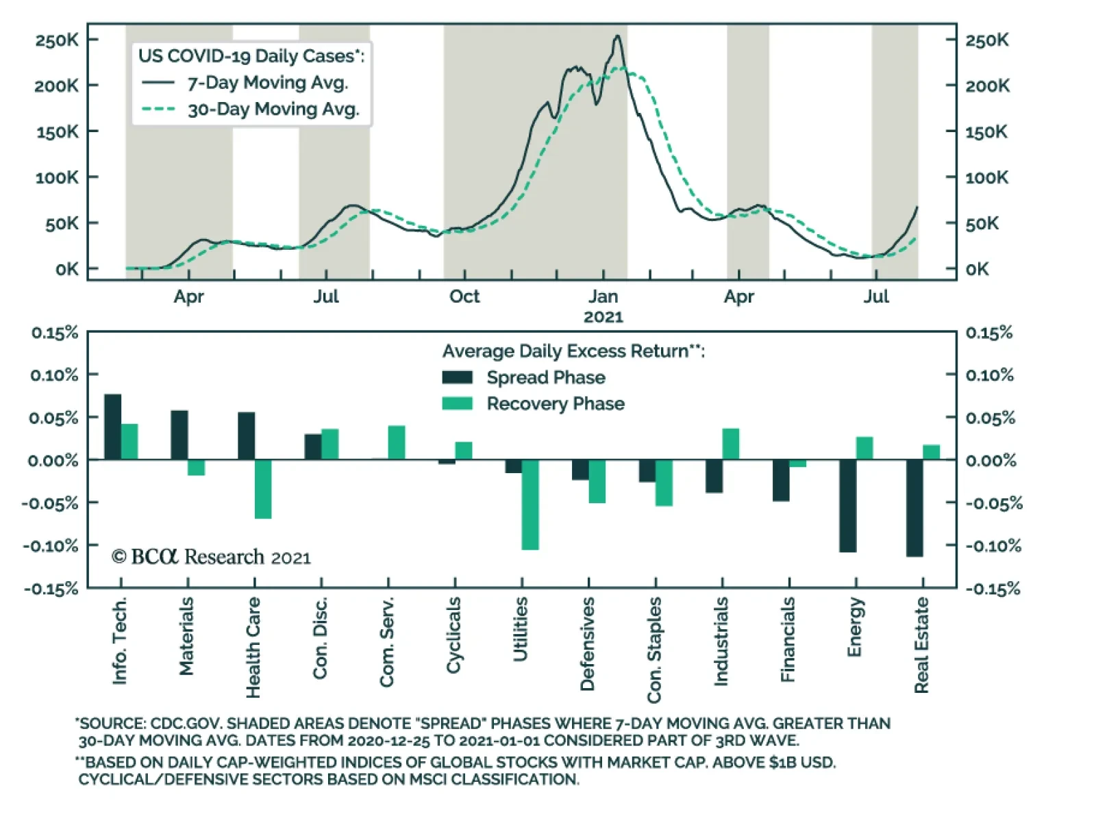 Our colleagues at BCA Research’s Equity Analyzer service recently examined the performance of global equity sectors during different phases of the pandemic. The team identifies two phases of waves in US daily COVID-19…