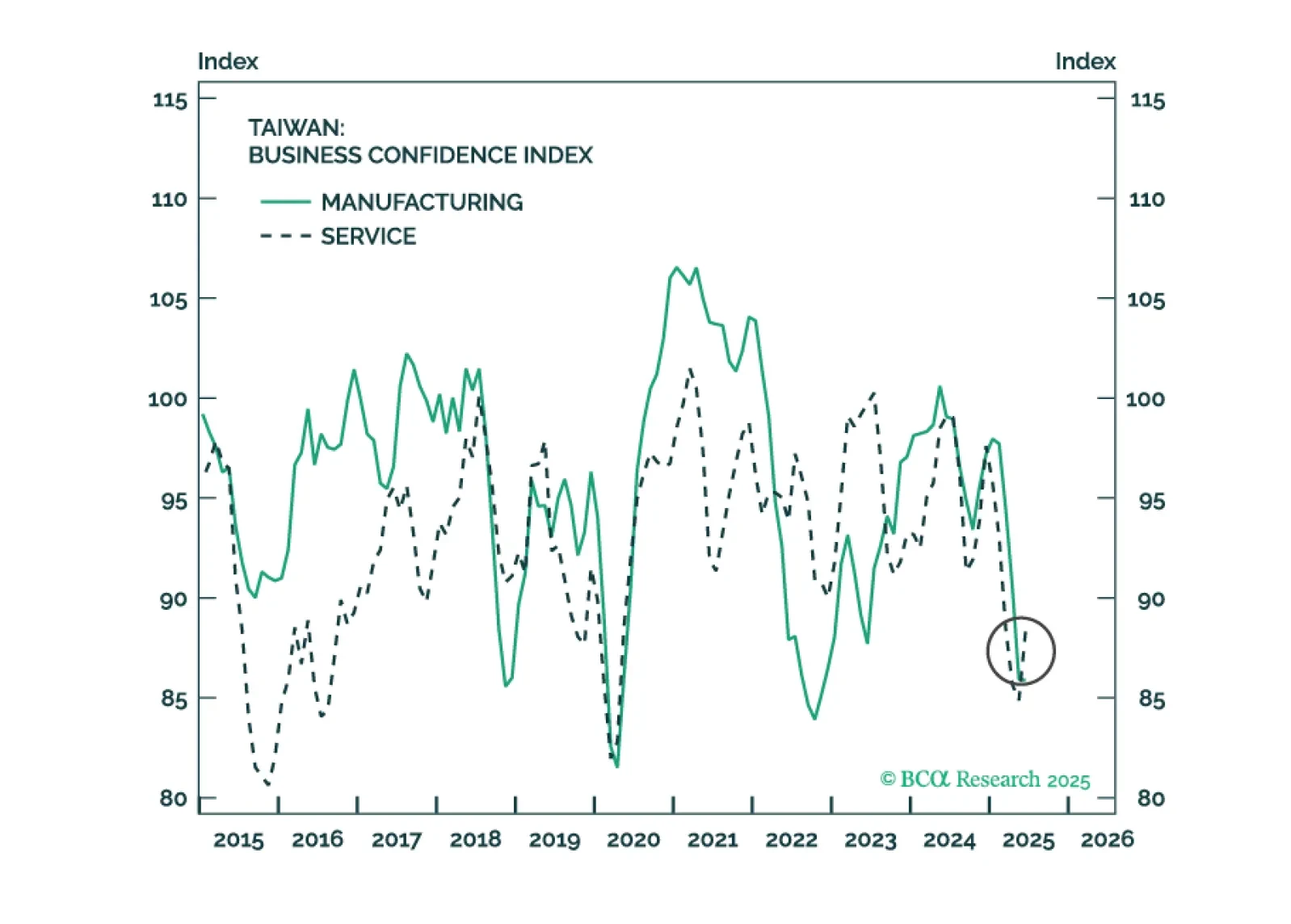 Taiwan’s failed recall election reduces 12-month geopolitical risk for Taiwanese and Chinese equities on the margin. We are reviewing our long European industrials / short Chinese industrials trade.