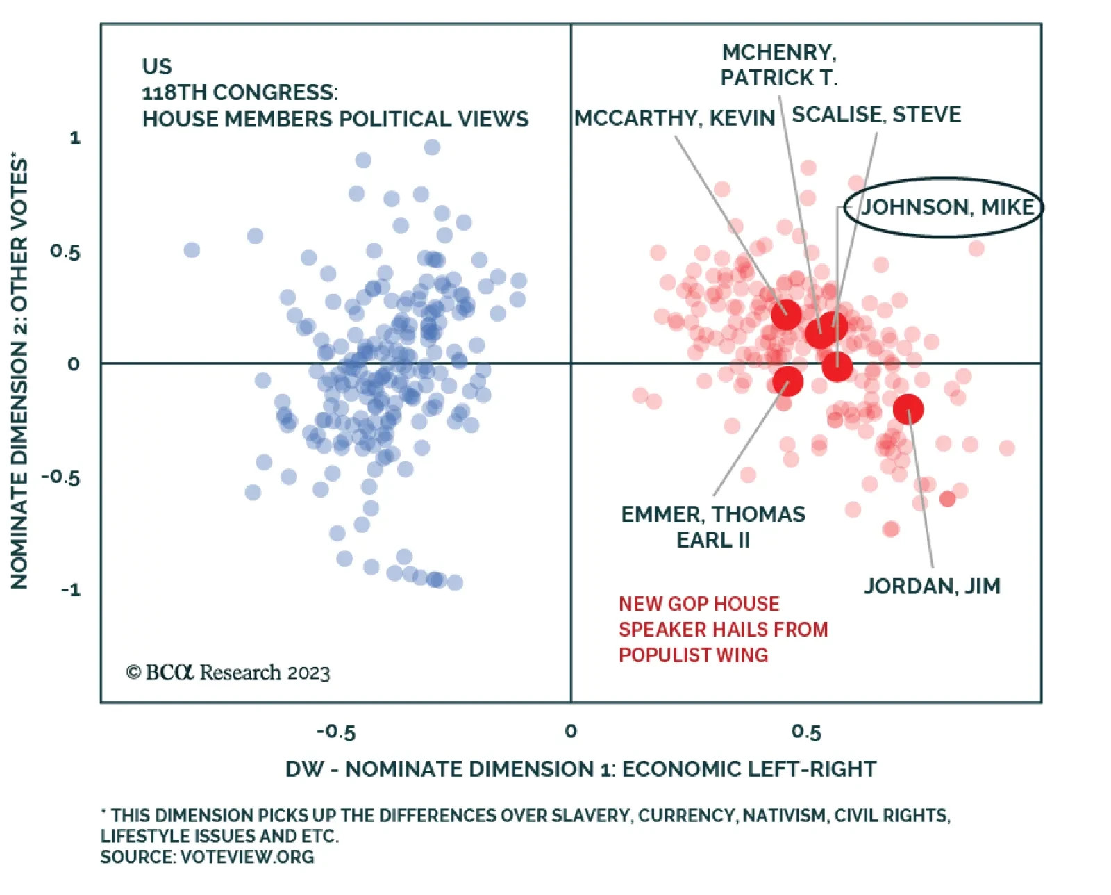 The US House of Representatives finally got a Speaker, but according to BCA Research’s US Political Strategy service, his voting record indicates that he will be a populist hardliner, which increases the chance that there…