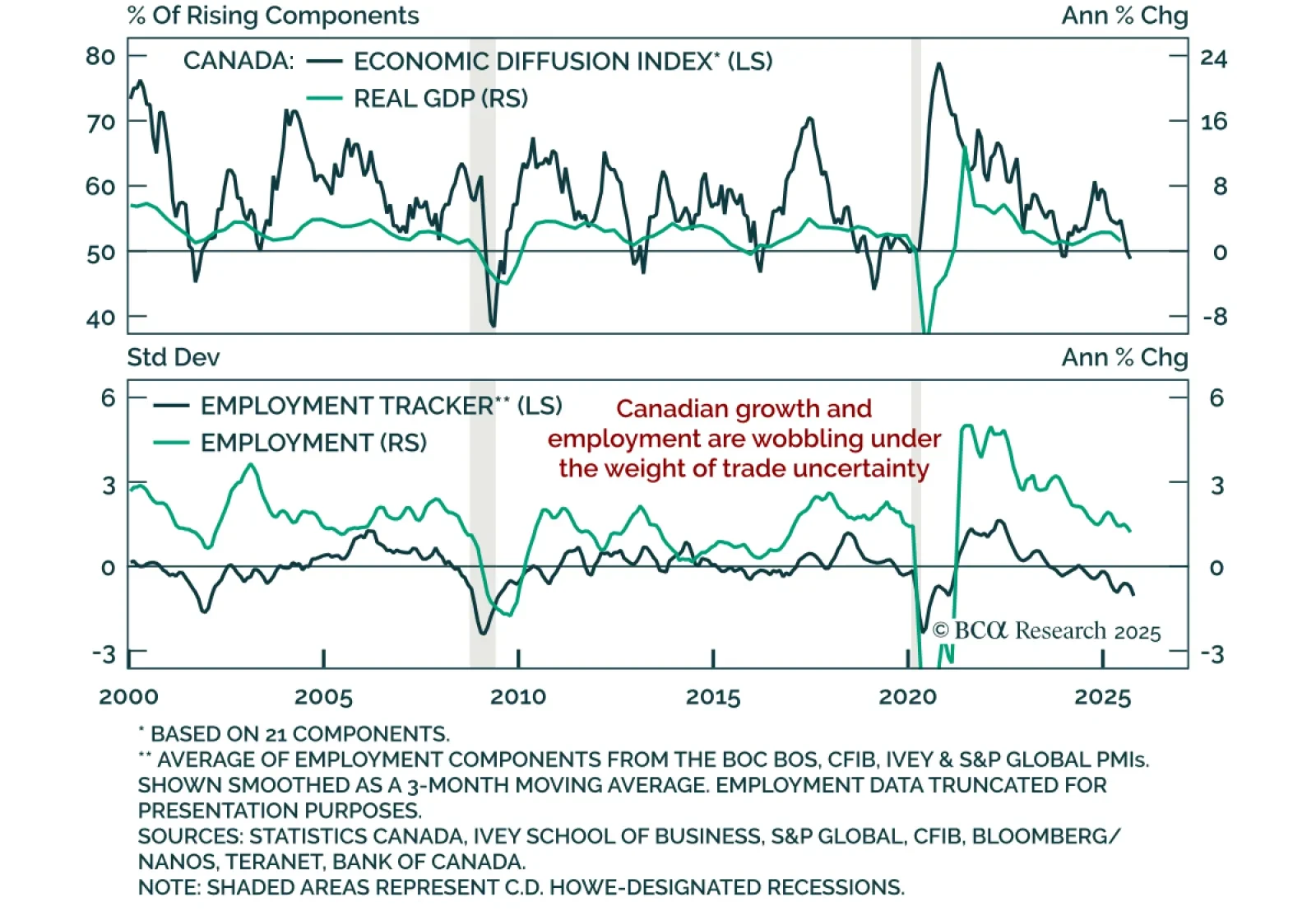 Canada’s Q3 Business Outlook Survey paints a weak macro picture with limited price pressures, supporting an overweight on CGBs and CAD 5s10s steepeners. The BOS Indicator ticked up marginally to -2.3 from -2.4, as low capacity…