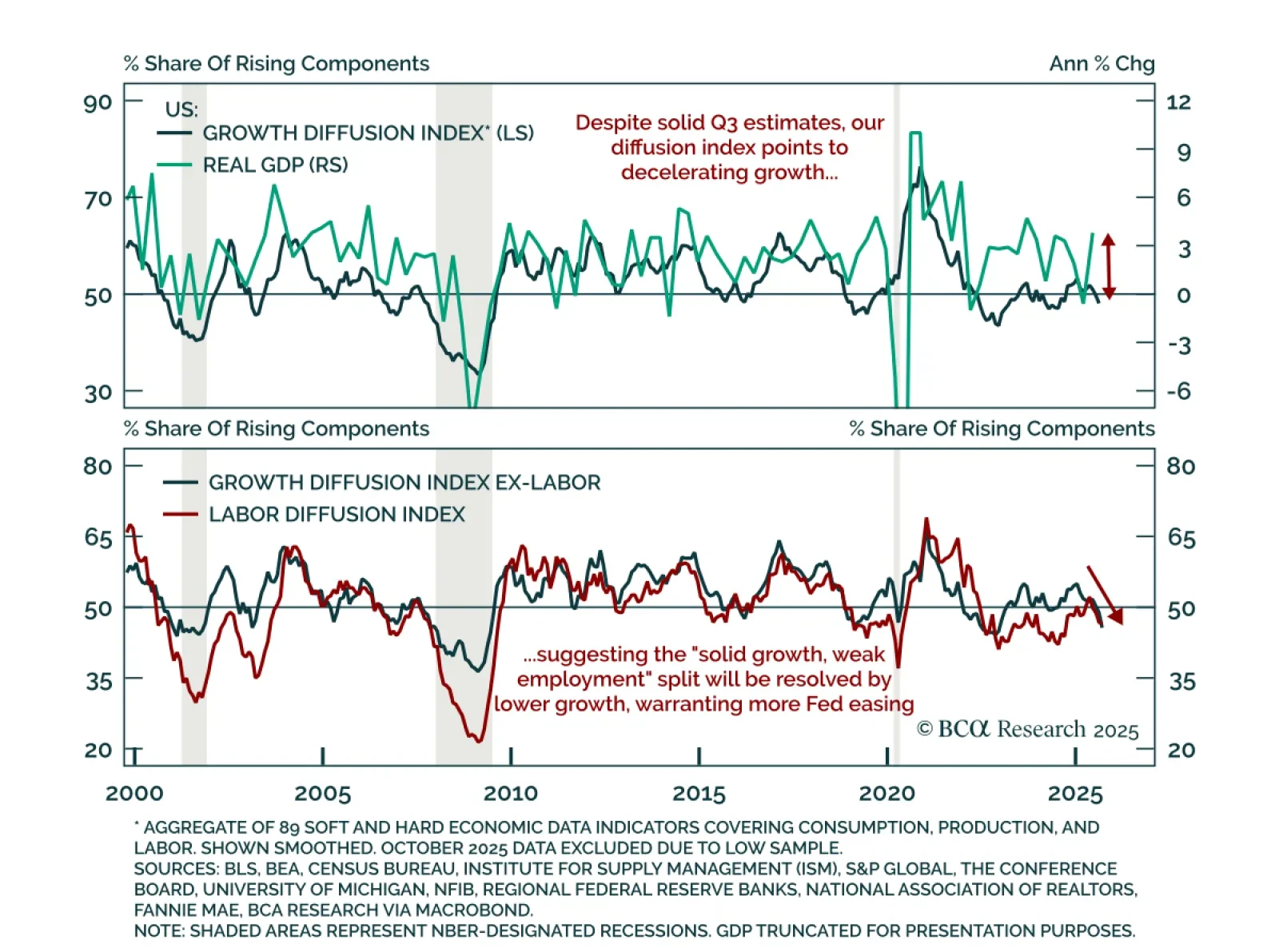 We expect the divergence between resilient growth and weakening employment to be resolved by lower growth estimates, supporting long duration and steepeners. Economic activity and employment usually move together in a circular…