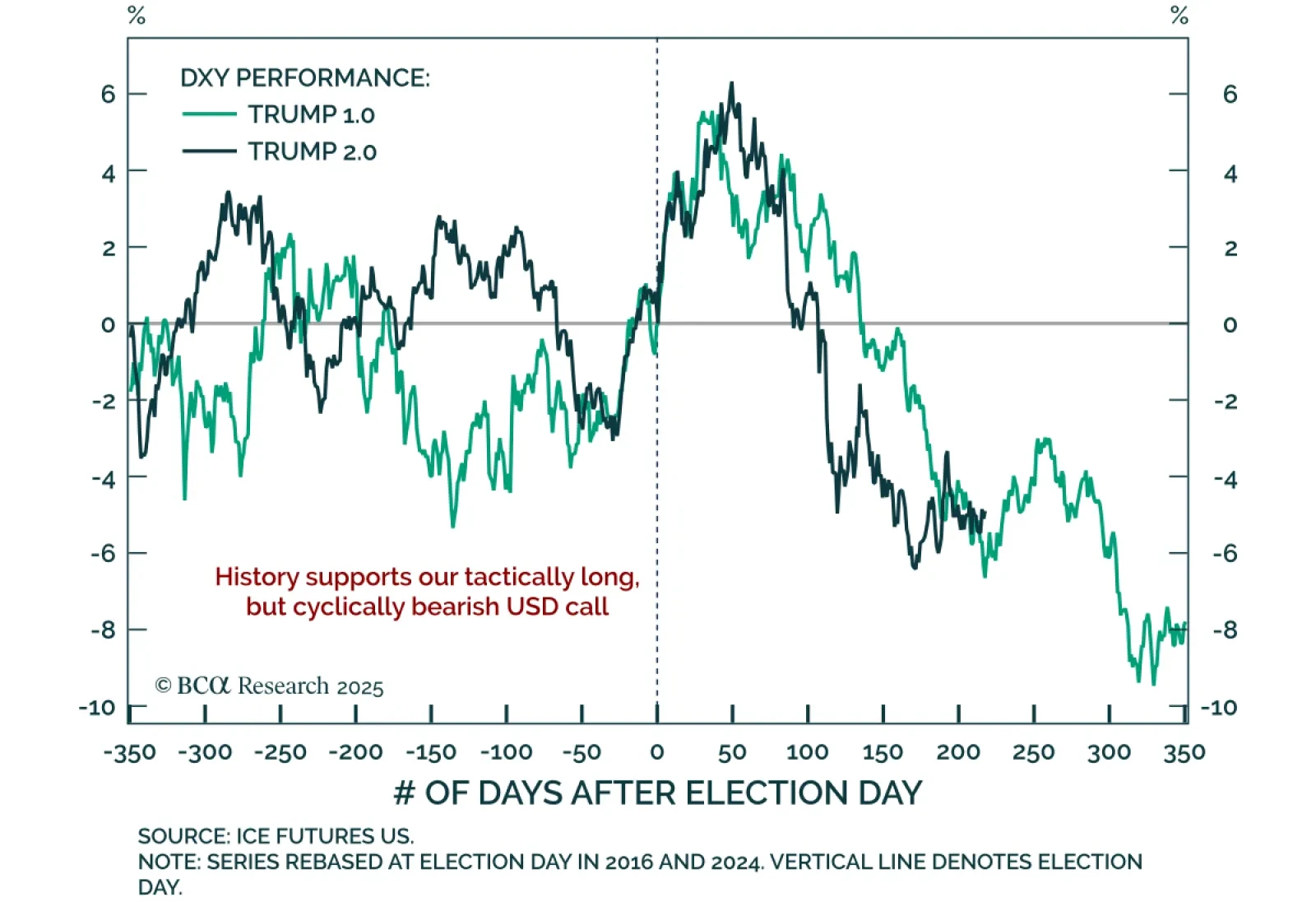 Trump-era policy patterns are reappearing in FX, supporting a temporary bounce in the dollar. Our Chart Of The Week comes from Chester Ntonifor, FX Solutions and Special Reports strategist.Chester updated his “KISS” (Keep It Simple…
