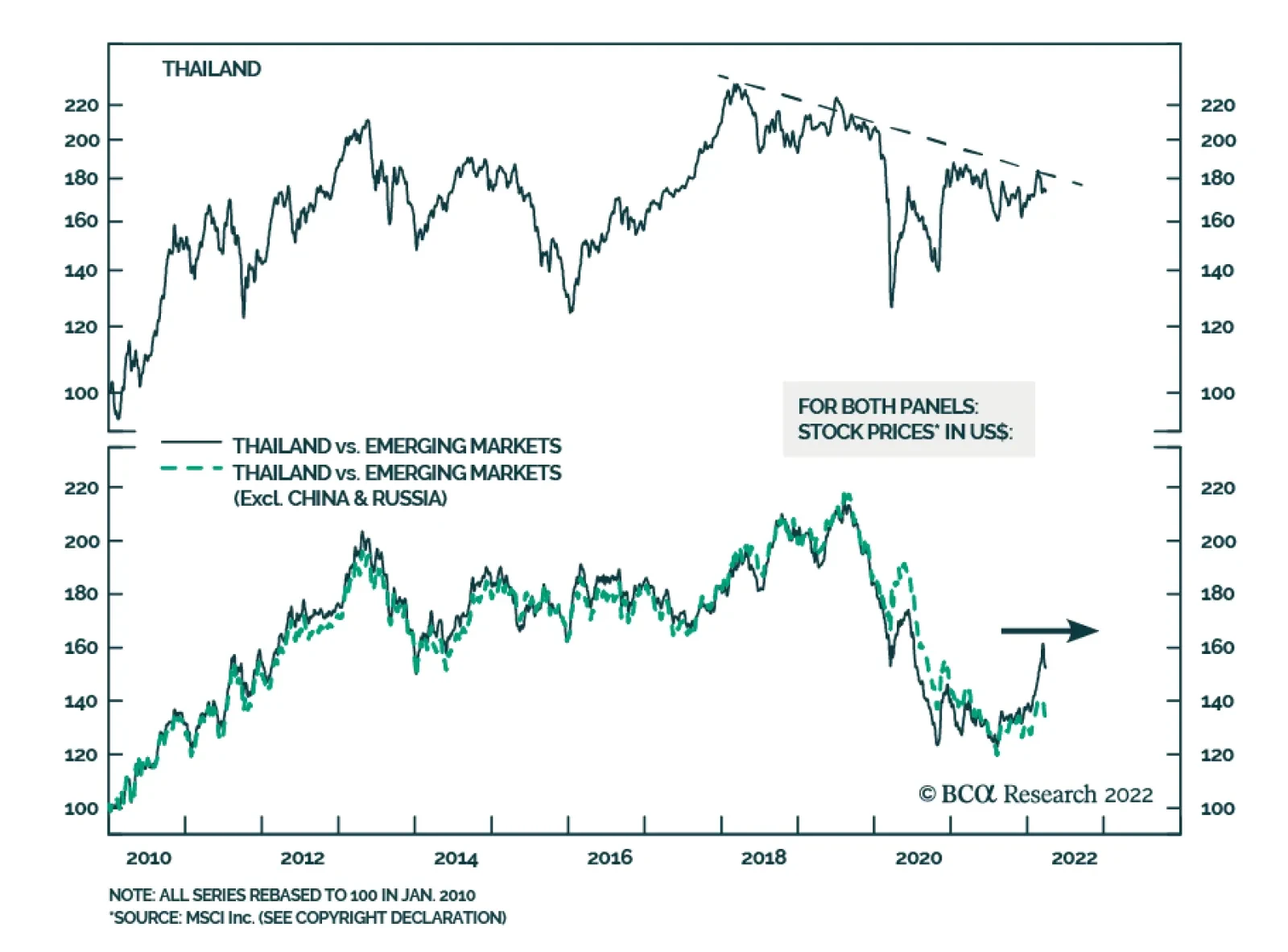 BCA Research’s Emerging Markets Strategy service concludes that investors should maintain a neutral allocation to Thai equities in EM and emerging Asian portfolios for now, but put the bourse on an upgrade watch. Thai…
