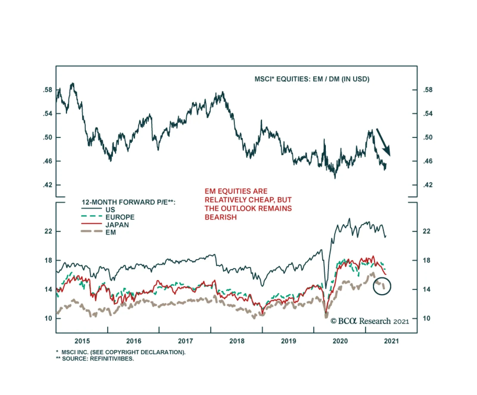 Since mid-February, emerging market equities have consistently underperformed their developed market peers. According to MSCI indices, the relative performance in common currency terms is heading towards last May’s lows.…