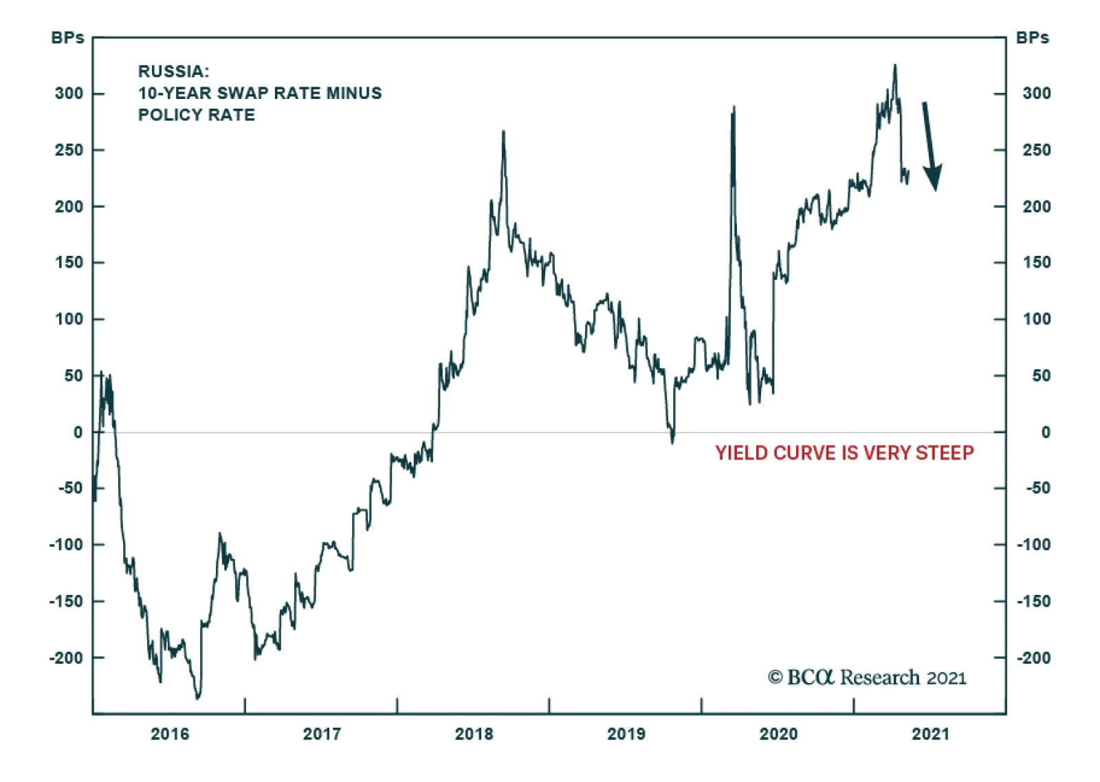 Rising consumer price inflation and inflation expectations have led the Central Bank of Russia (CBR) to hike interest rates from 4.25% to 5% over the past two months. This is a level of hawkishness that stands out globally, as…