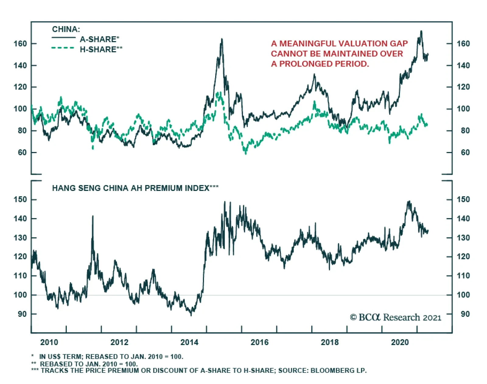 China's H-share market lagged its A-share counterpart in most of 2019 and 2020. While A shares benefited more directly from China’s domestic liquidity and monetary easing in the past two years, H-shares were hammered by…