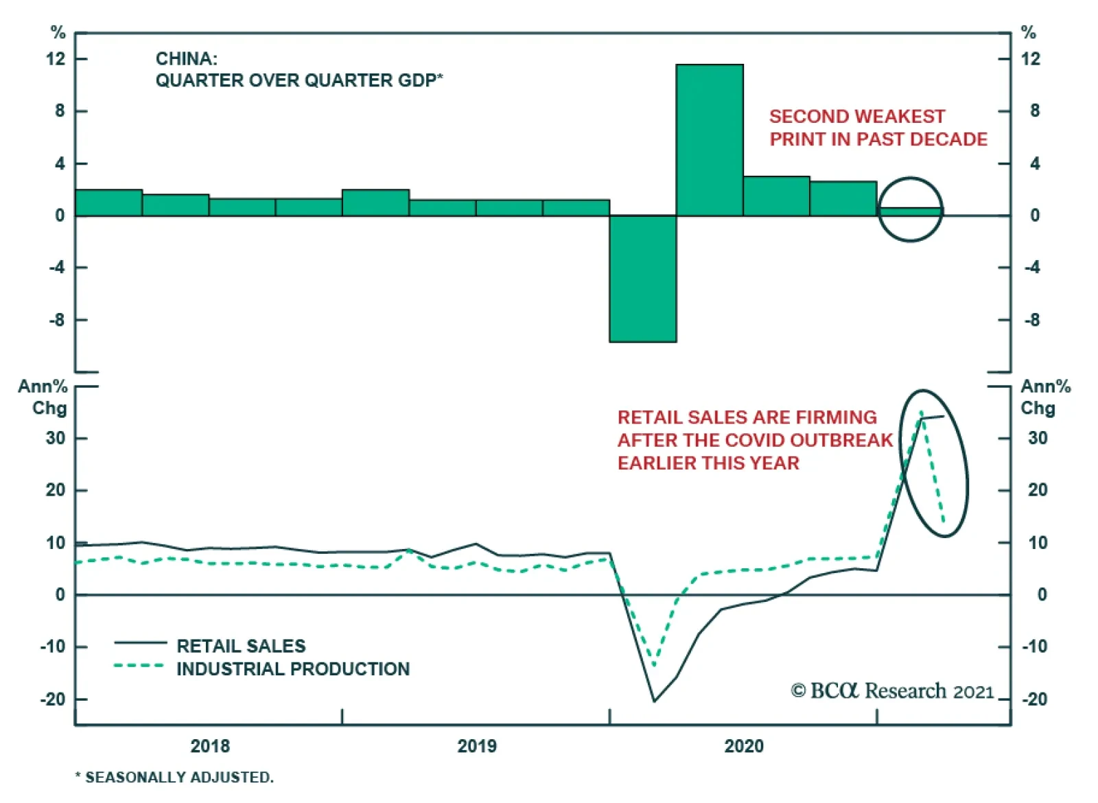 China’s GDP release shows the economy growing by a colossal 18.3% y/y in Q1. However, this figure is highly distorted by the pandemic-induced economic collapse last year. Instead, the quarter-on-quarter comparison reveals a…