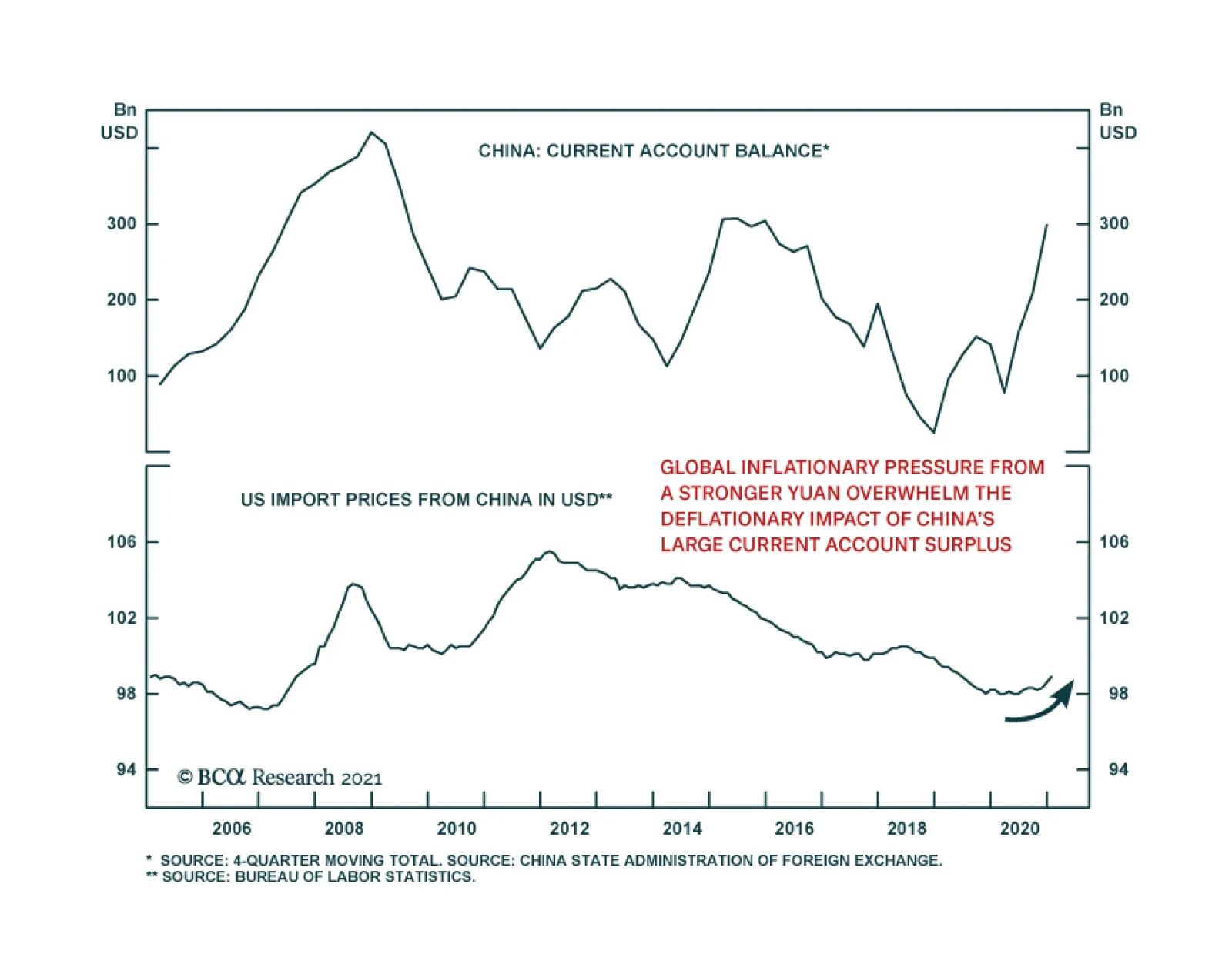China’s current account surplus jumped to $130.2 billion in Q4 2020 from $92.2 billion in the prior quarter. This corroborates the thesis that thus far, the supply-side has been doing the bulk of the heavy lifting in China…