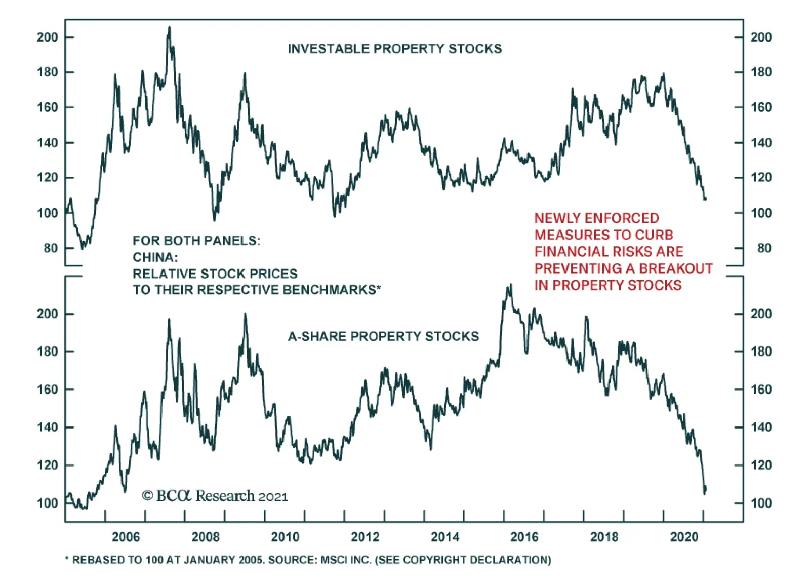Chinese property had a standout 2020. Property sales broke records and property investments expanded 7% y/y, outpacing total fixed asset investments. But despite this hot performance, property developers’ equities were…