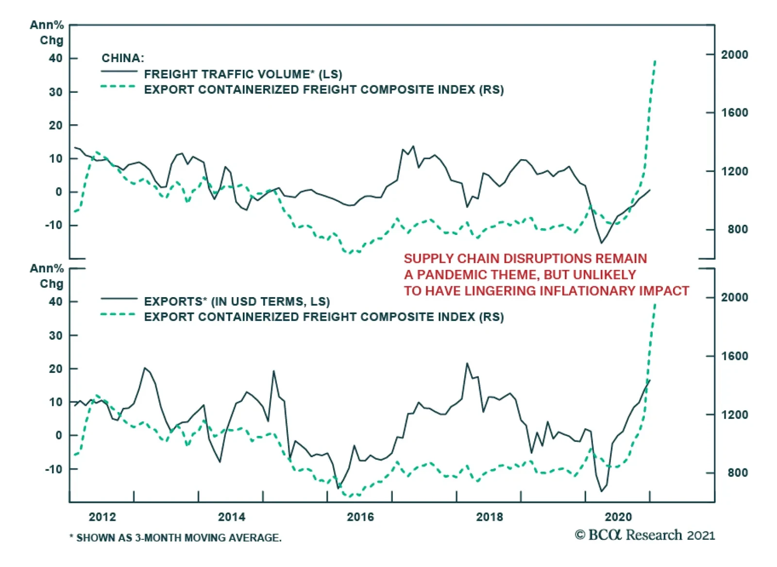 The recent massive jump in freight costs overstates improvements in global trade. Chinese exports have been accelerating at a healthy clip and freight traffic is recovering, but the surge in China’s containerized freight…