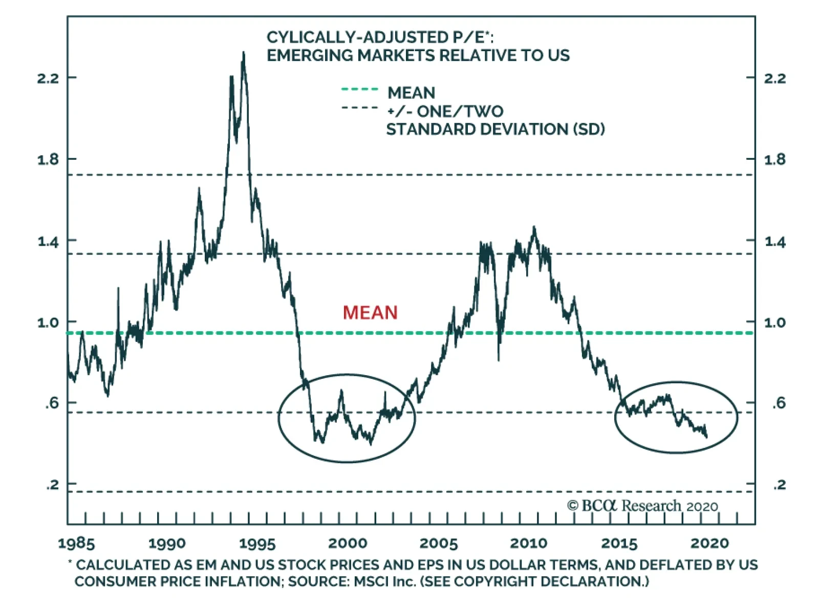 Yesterday, BCA Research's Emerging Markets Strategy service concluded that EM outperformance is not imminent. According to the chart above, EM equities relative to their US counterparts are as cheap as they were at their…