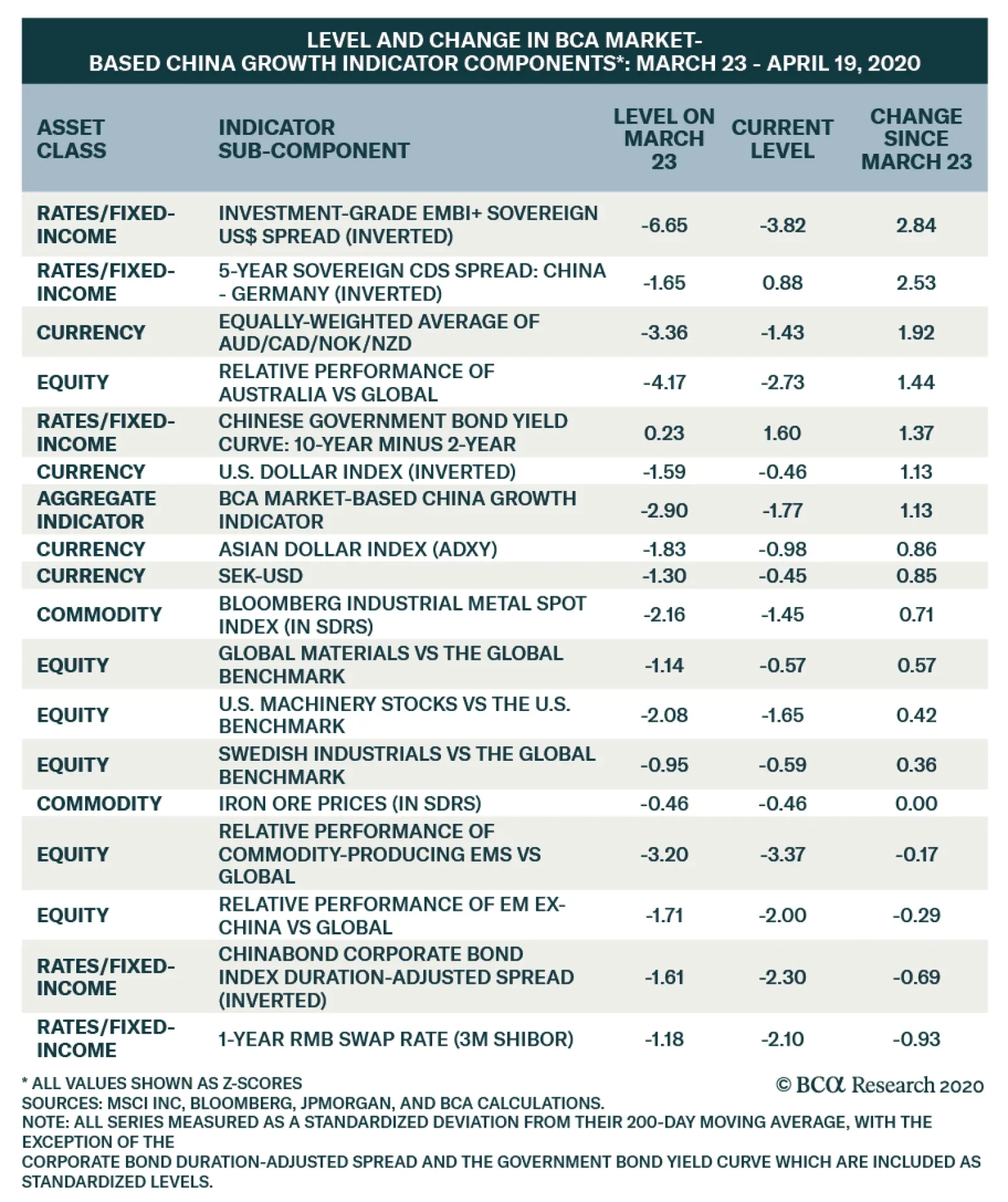 The above table presents a breakdown of the subcomponents of our BCA Market-Based China Growth Indicator. The indicator has rebounded since March 23 alongside the US and global stock prices, and the table highlights the change in…