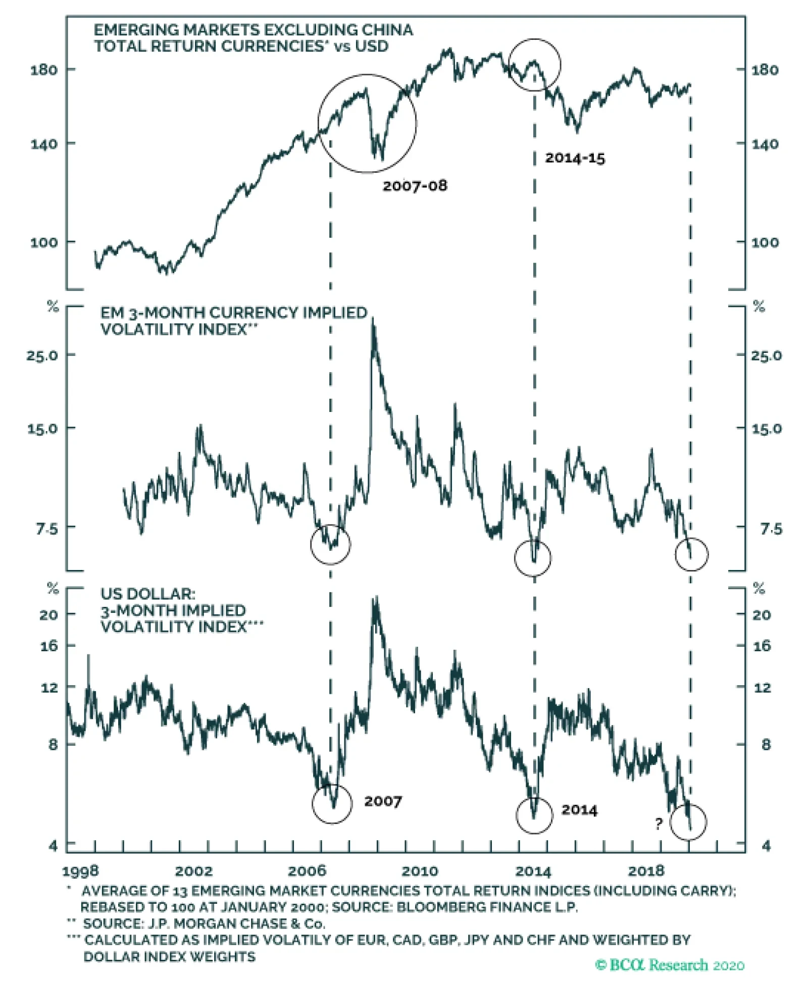Implied volatility for the US dollar, EM currencies and a wide range of equity markets has plummeted to record lows. Such low levels of implied currency market volatility historically preceded major moves in currency markets and…
