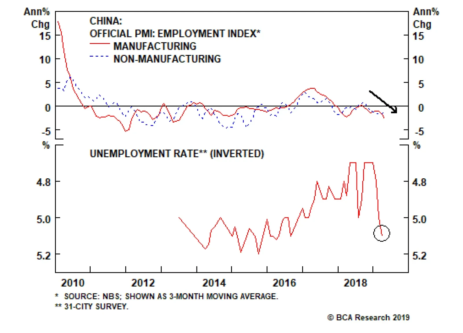 Apex of Globalization: Global trade as a whole is contracting as a result of the global slowdown, which the trade war has exacerbated (Chart 16). The negative impact on China is acute and threatens something akin to the global manufacturing recession of 2015 (Chart 17). Given that the trade war is now piling onto a merely fledgling rebound in Chinese and global growth this year, it is possible that the manufacturing slowdown could even get worse than 2015 and culminate in a global recession in our worst case scenario of a major strategic escalation. Preventing this outcome, China will increase fiscal-and-credit stimulus, which we have argued is likely to overshoot expectations this year due to trade war and the country’s desire to meet 2020 urban income goals (Chart 18). The magnitude should be comparable to the 2015-16 stimulus, unless a global recession is immediately in view, in which case it will be larger. Chart 17A Relapse Would Point Toward 2015-Sized Crisis