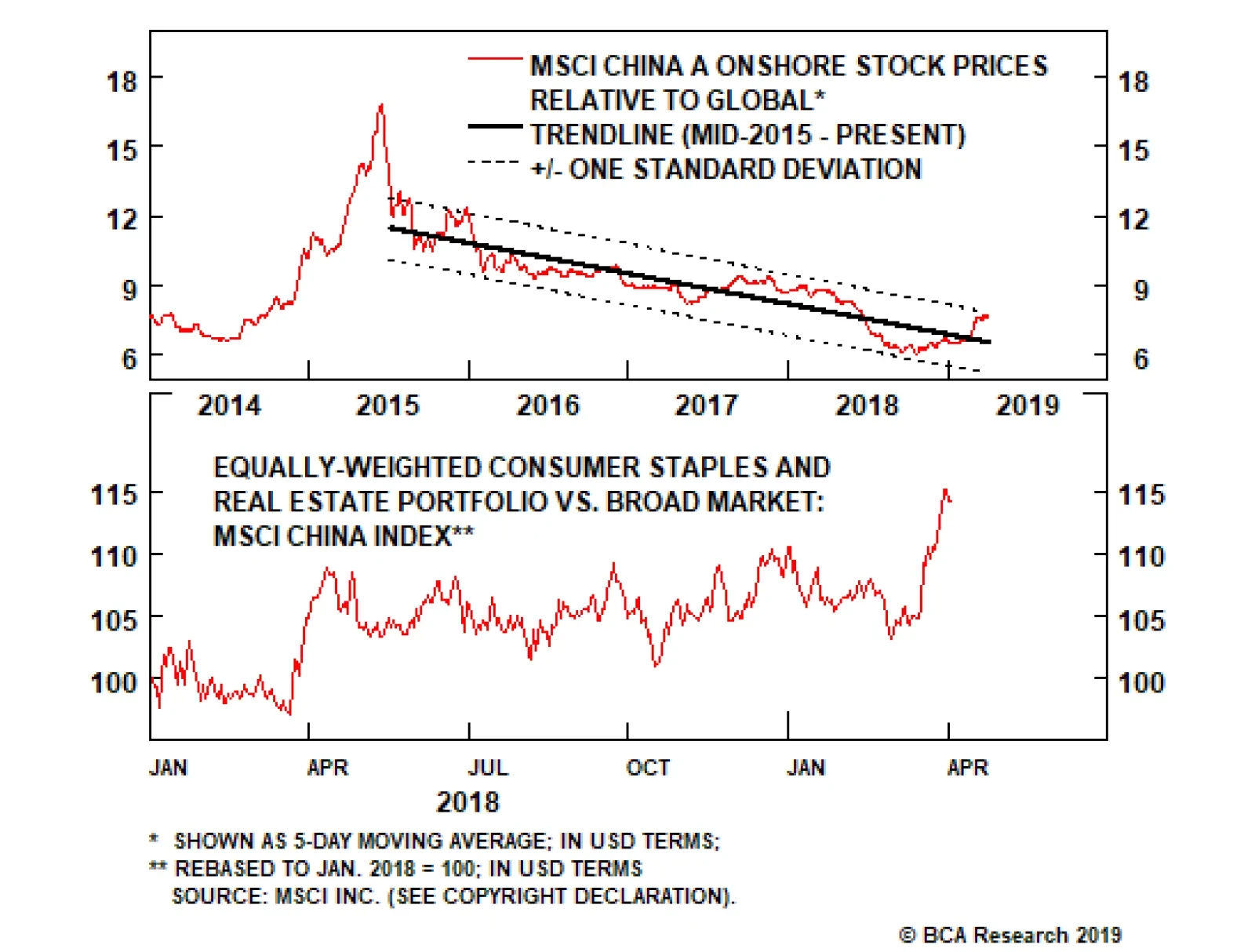 The first panel of the chart above shows that coincident economic activity sharply converged in January and February with our China Investment Strategy team’s leading indicator for China’s economy, as we had argued many times over the past several months was…