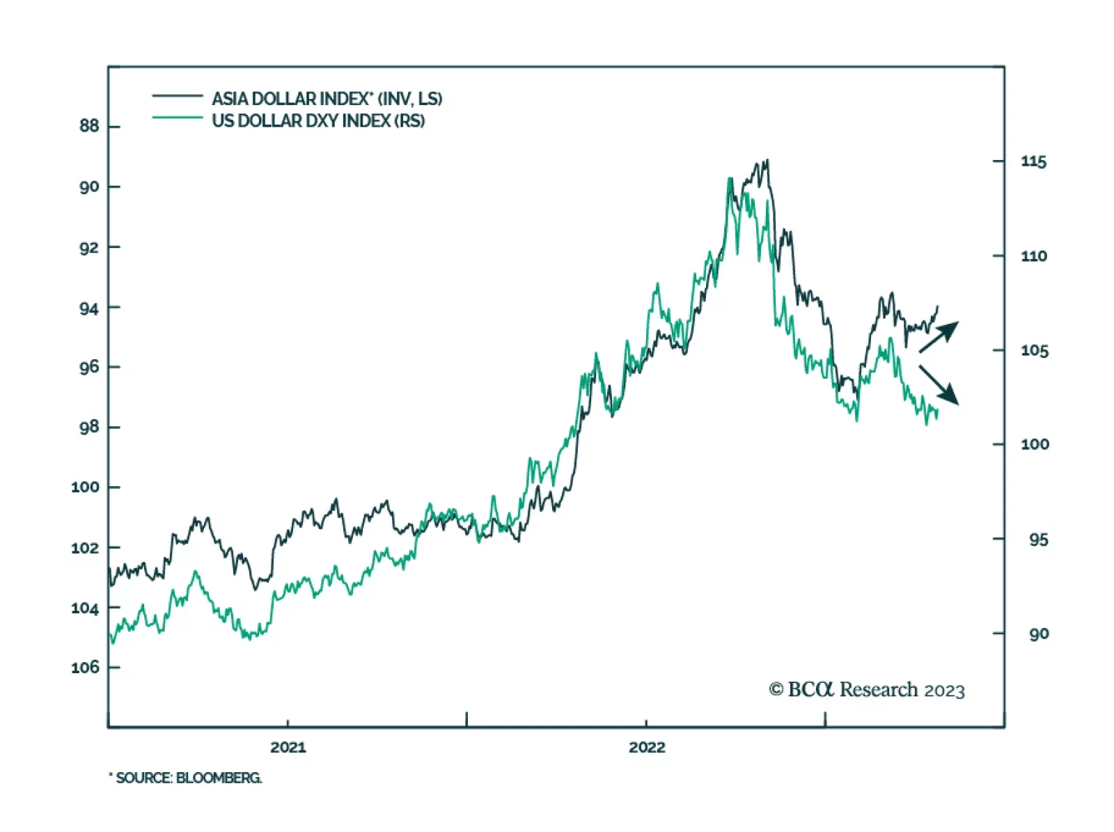 The performance of Asian currencies – proxied by the ADXY index – is typically a mirror image of the DXY index. This is not surprising. After all, Asian currencies benefit from broad-based dollar weakness. However…