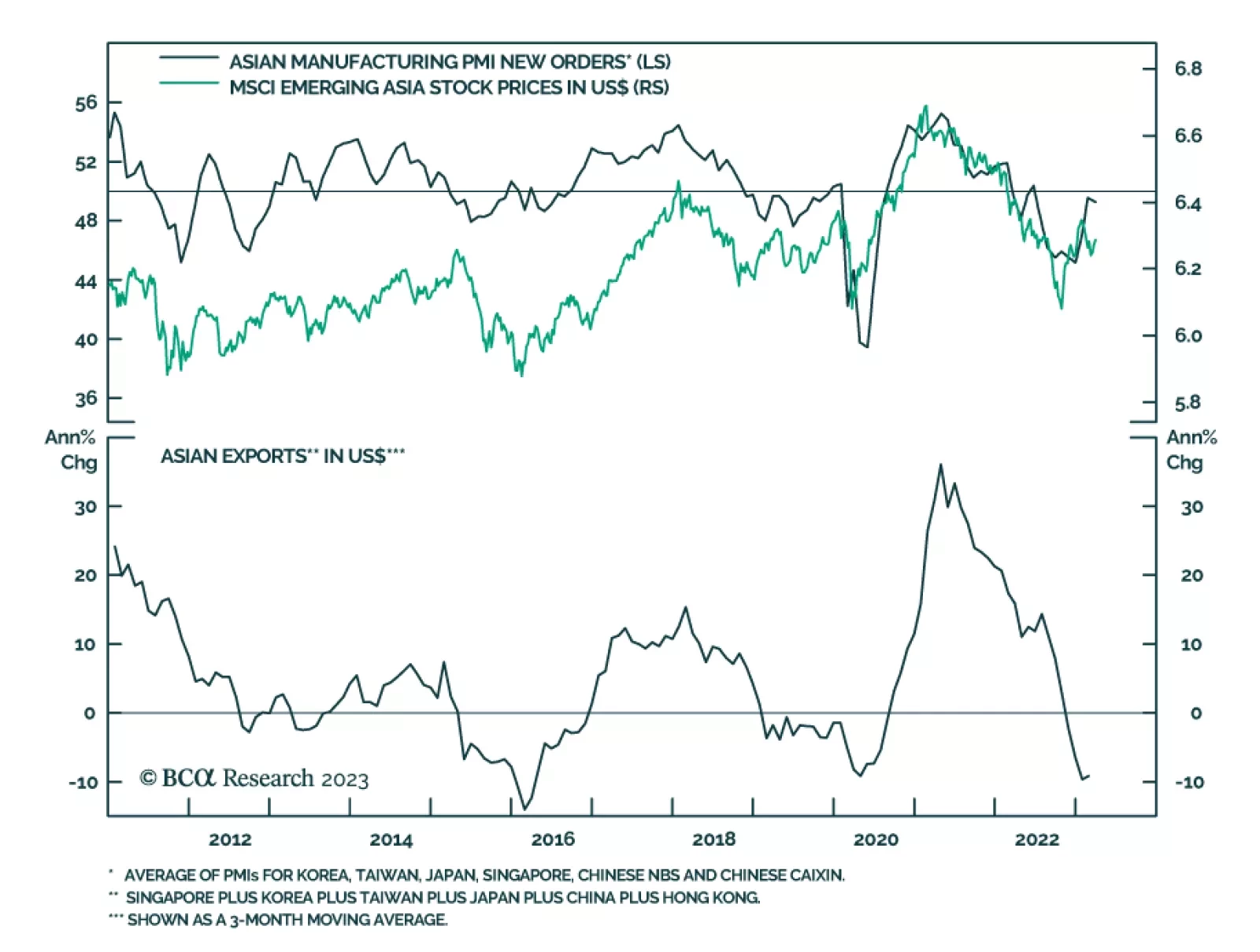 According to our Emerging Markets Strategy service, Asian exports will continue contracting at a double-digit rate warranting a cautious stance on emerging Asian equity markets. The New Orders component of Asian Manufacturing…