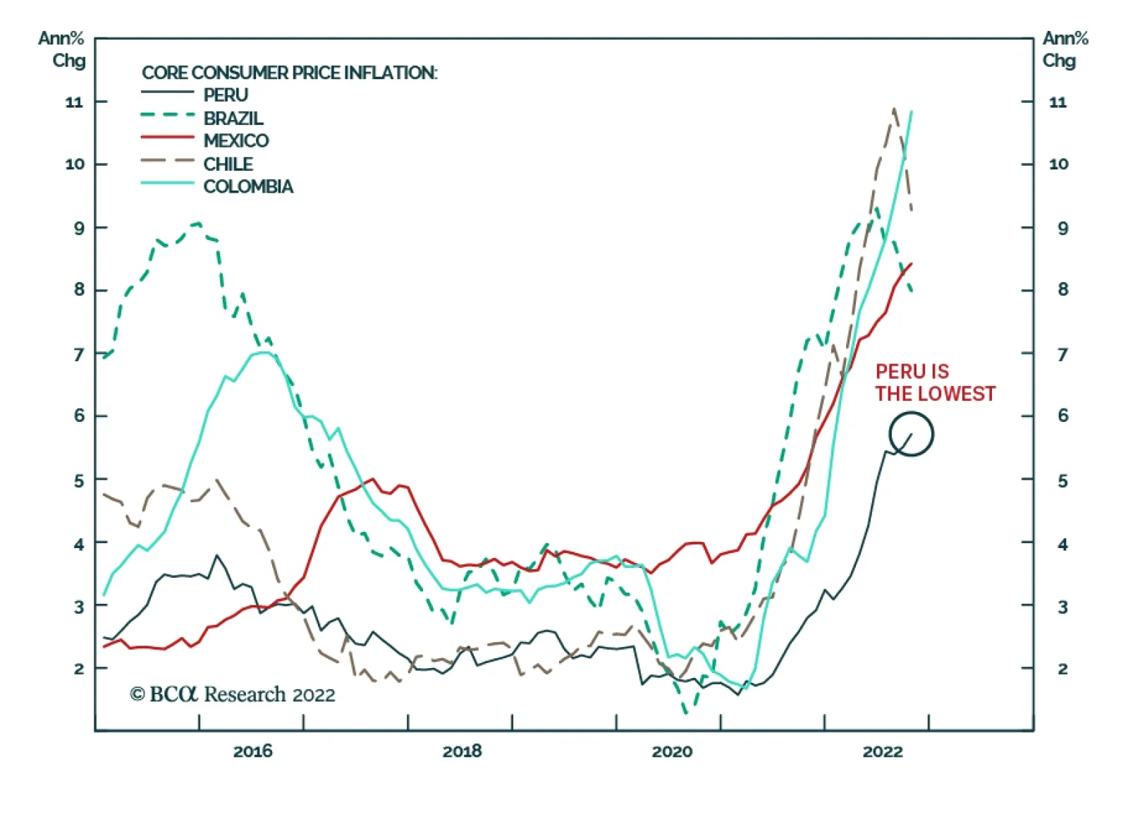 Peruvian equities and bonds are well positioned to outperform their EM peers, given strong economic fundamentals. First, inflationary pressures are relatively muted. Core CPI stands at 5.7% and is the lowest among major LATAM…