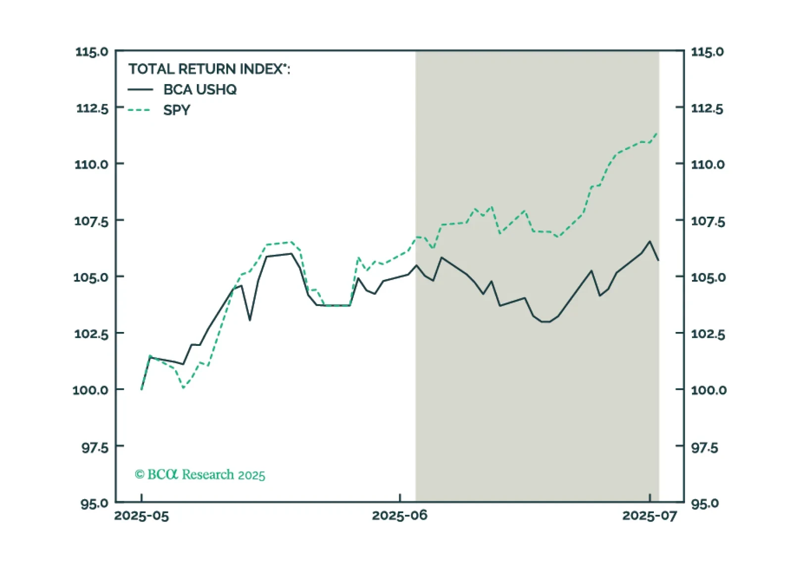 The US High Quality (USHQ) portfolio underperformed its benchmark through June, returning 1.2%, whilst its SPY benchmark returned 5.1%. On a trailing three-month basis, performance was notably weak vs. benchmark, with USHQ…