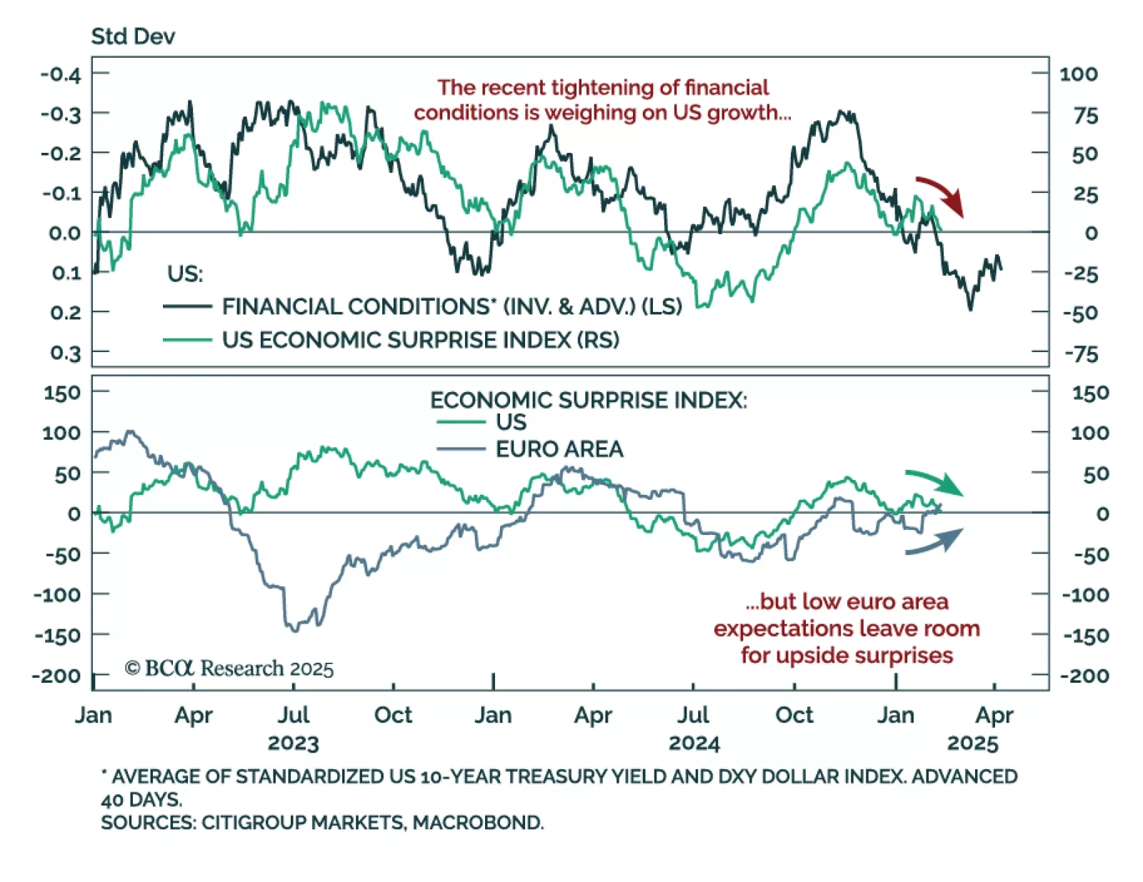 While geopolitics captured the latest headlines, Eurozone economic surprises have turned positive, while those in the US are on the verge of turning negative. Global economic surprises hinge on expectations and…