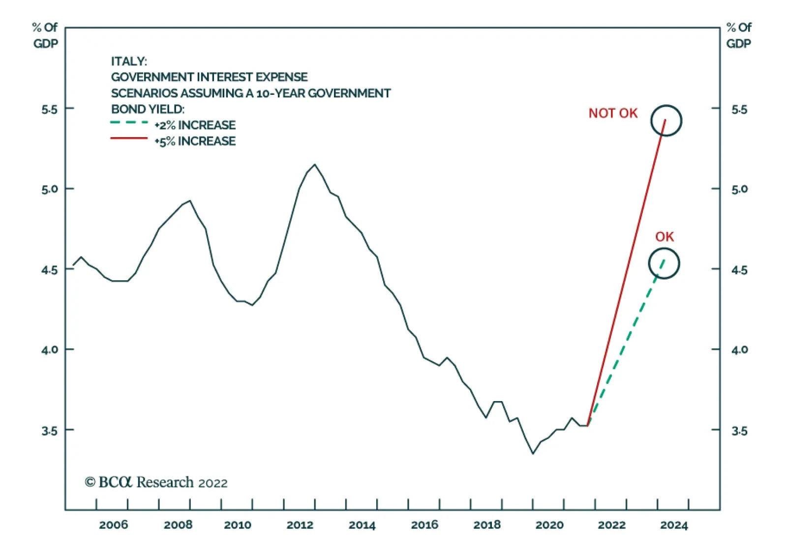 According to BCA Research’s European Investment Strategy service, German yields can rise above 2% without causing a public finance crisis in Italy. How high can yields rise in the Eurozone before Italy experiences…