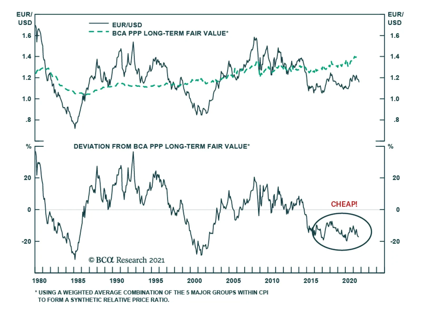 According to BCA Research’s European Investment Strategy, conditions are falling in place for the countertrend decline in EUR/USD to end soon. The big fundamental forces point to a firmer euro on an 18- to 24-month basis…