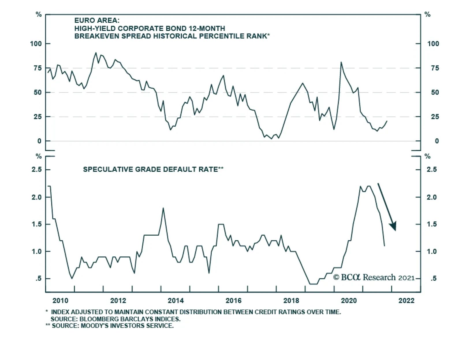 European high-yield corporate bond spreads have been widening over the past four weeks, likely because of inflation fears spurred by rising energy prices and input prices. Our 12-month breakeven spread metric, which measures…