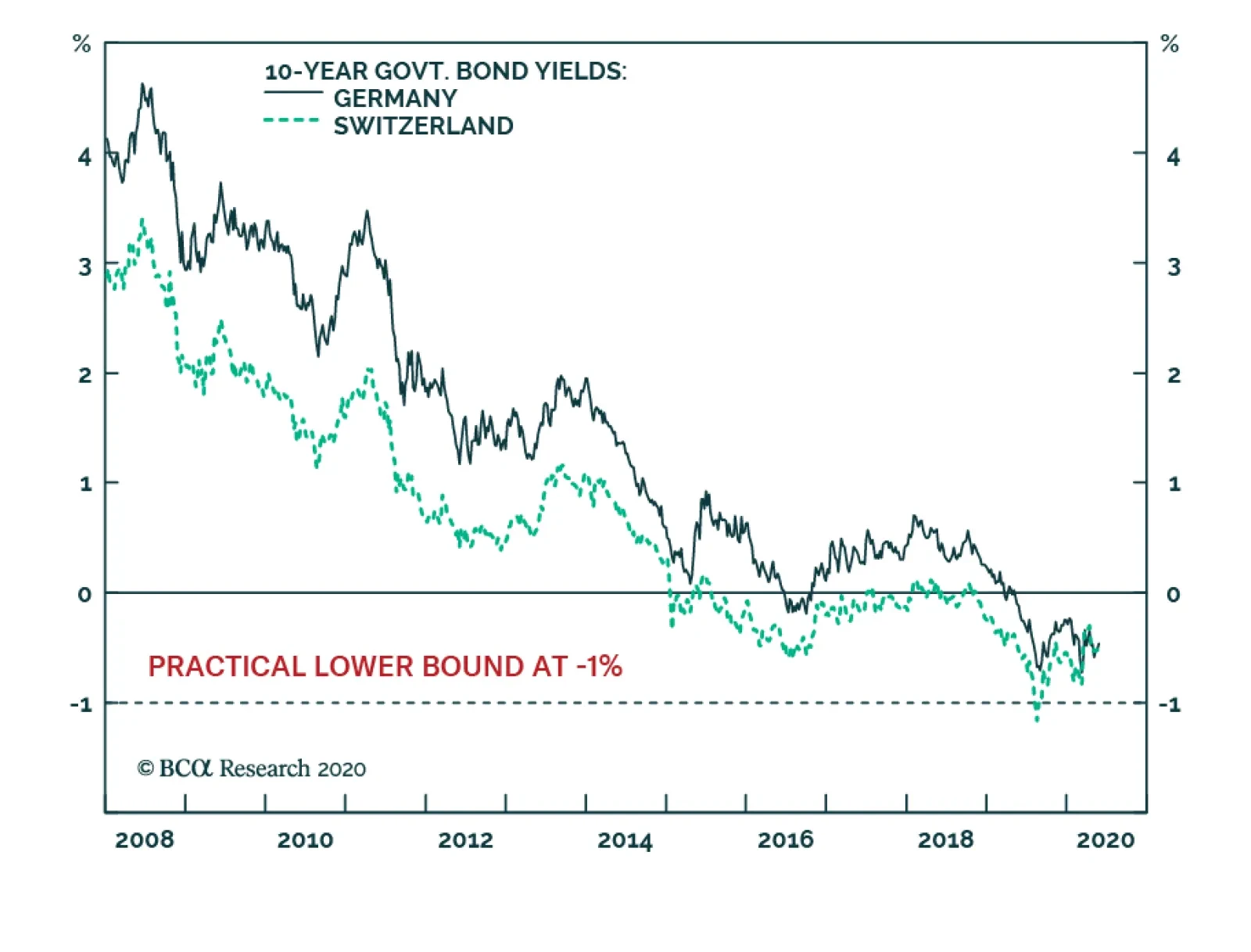 BCA Research's European Investment Strategy service argues that German Bunds and Swiss Bonds are no longer safe-haven assets. German and Swiss bond yields are close to the practical lower limit to yields, which we believe…