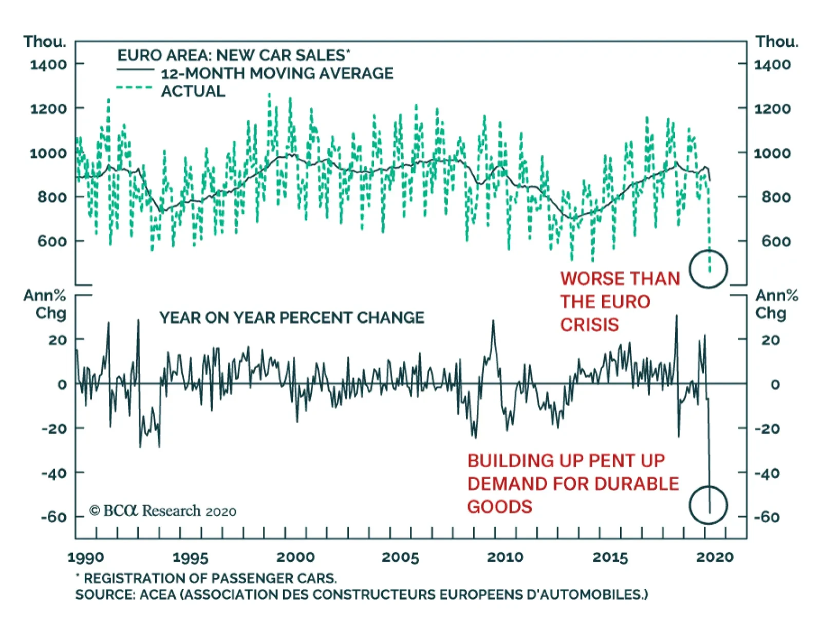 In March, European car registrations collapsed 55% on an annual basis. This indicates that European growth will be extremely negative in Q1 2020. While this contraction is stunning, it is a logical consequence of lockdowns: very…
