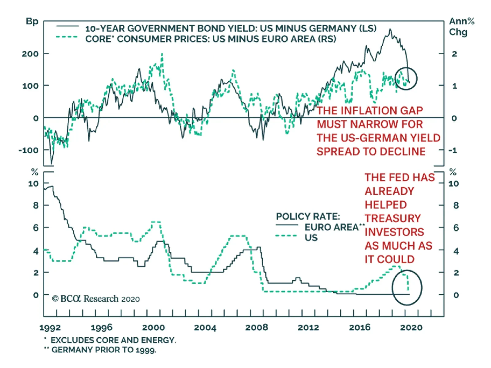 The 10-year yield spread between US Treasurys and German Bunds has quickly narrowed, falling by 170bps from a higher of 279bps in November 2018. Despite this sharp narrowing, the spread remains elevated by historical standards,…