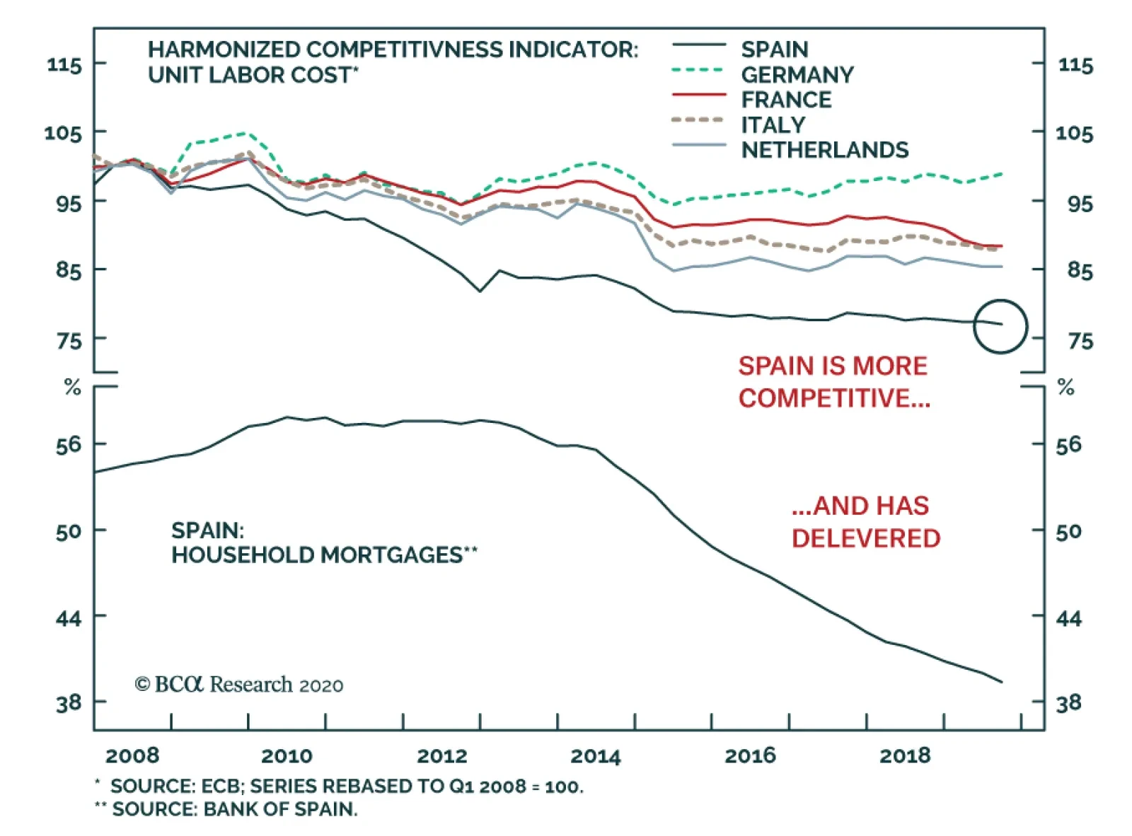 Two key structural factors support the Spanish economy. First, following the collapse in real wages and the productivity-boosting draconian labor market reforms that ensued from the debt crisis, Spanish competitiveness continues…