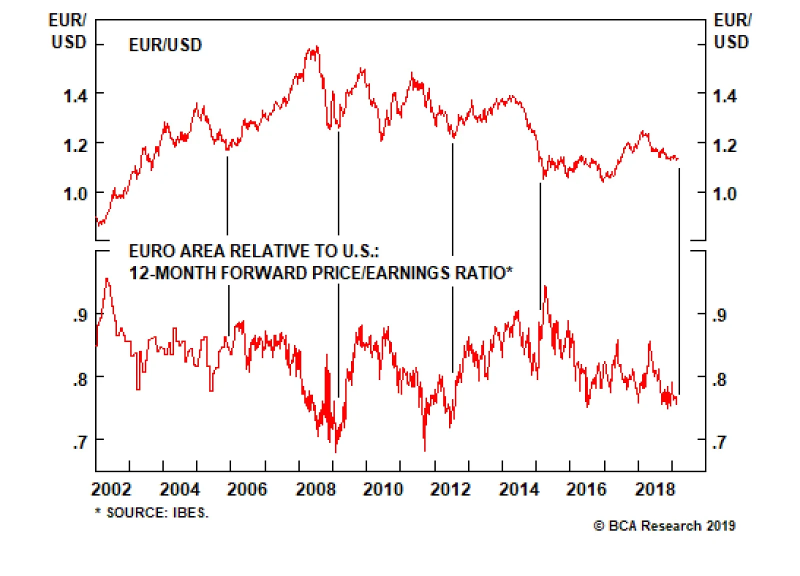 First, on a 12-month forward P/E ratio basis, euro area equities are trading at the kind of deep discount to U.S. stocks normally symptomatic of a trough in relative sentiment toward Europe. Such a discount is often followed by a…