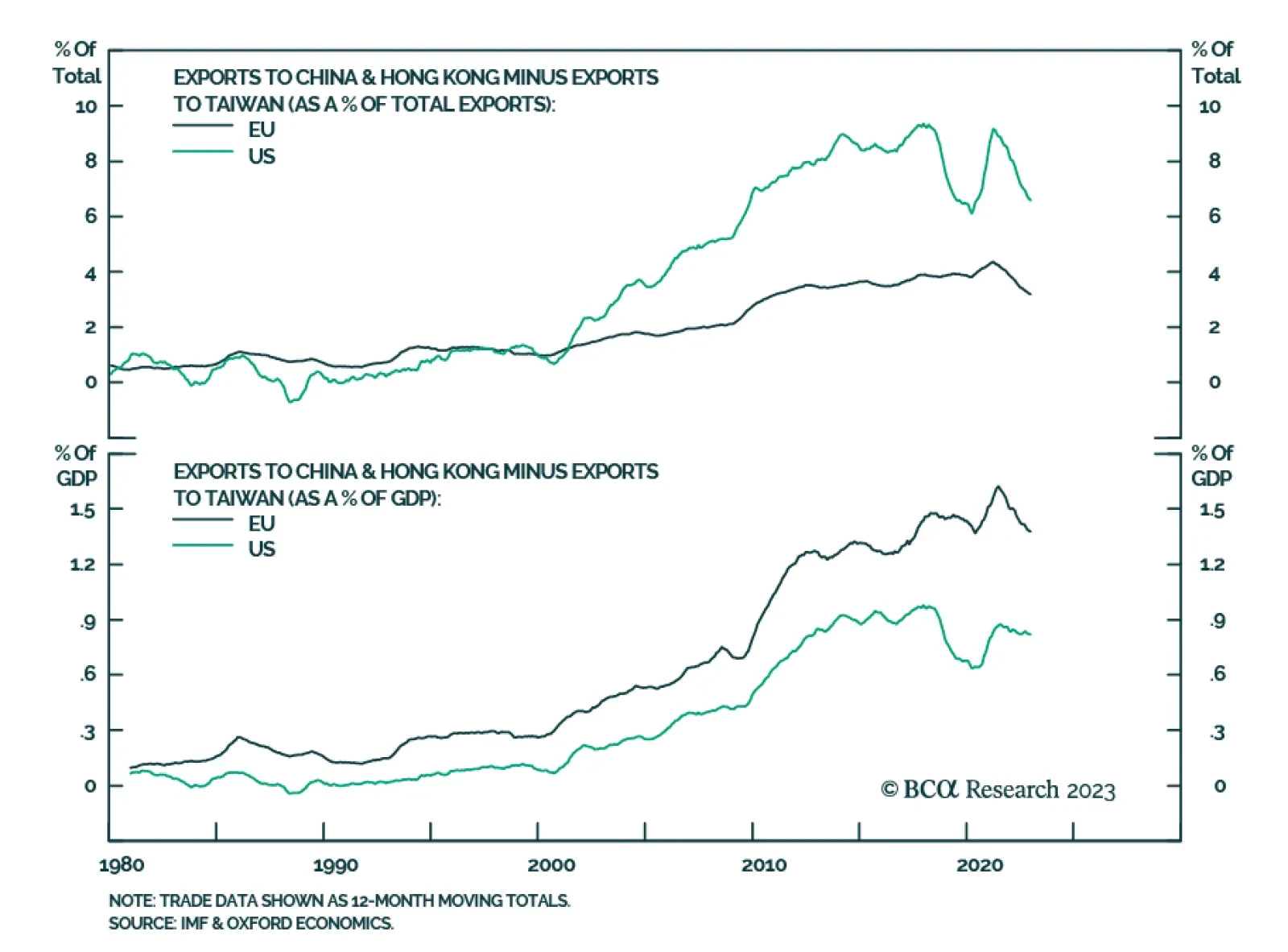 The reason why the EU will try to balance economic ties with China along with defense ties with the US for as long as possible is not strictly economic. Europe and the US are much more reliant on China than Taiwan for trade, but…