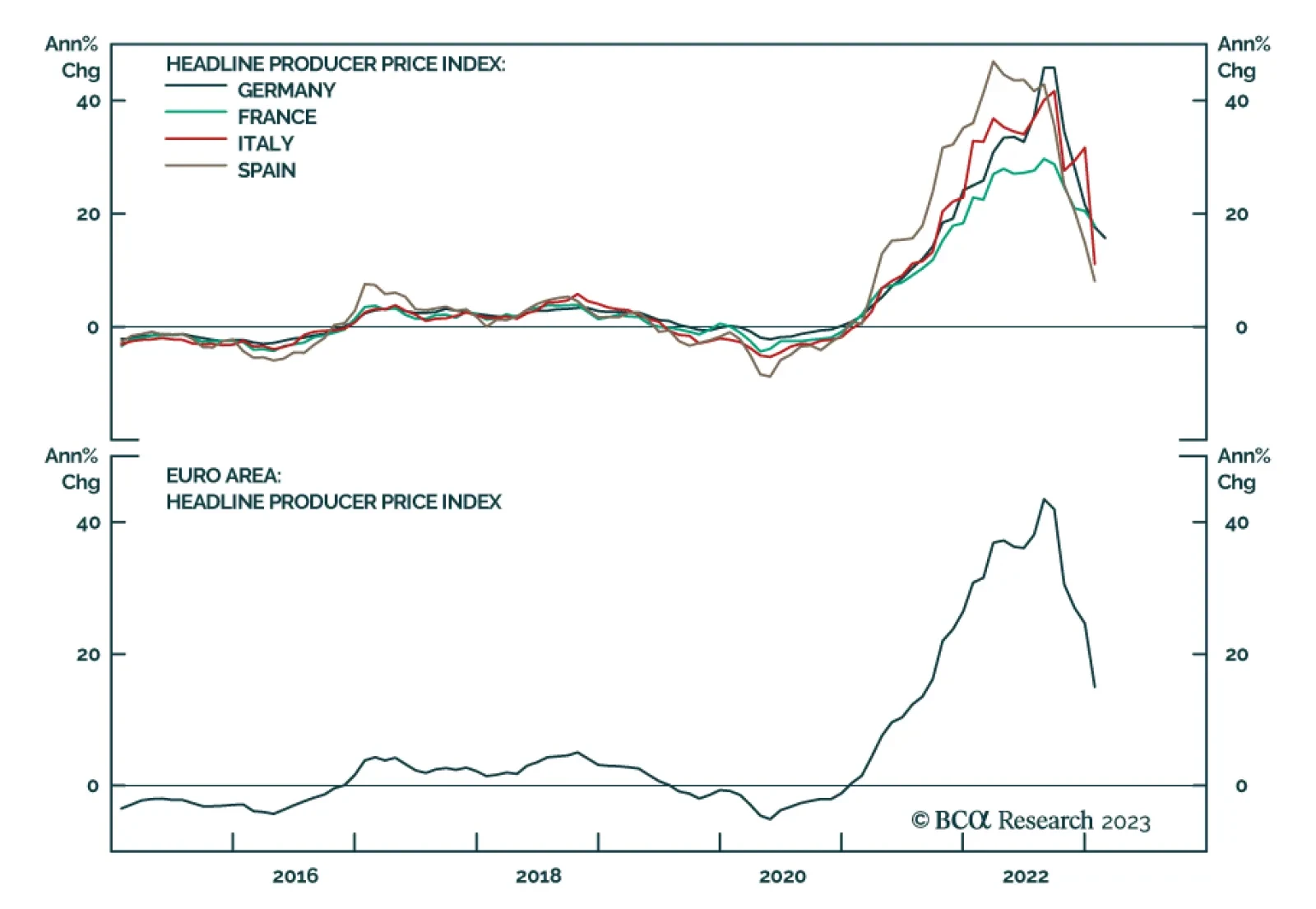 German PPI inflation decelerated from 17.6% y/y to 15.8% y/y in February – the lowest since September 2021. Although the February print came in above consensus expectations calling for a more significant slowdown to 14.5% y…