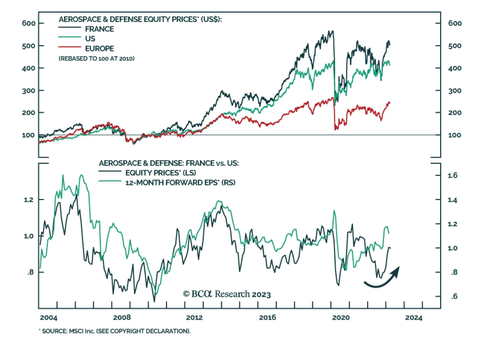 According to BCA Research’s European Investment Strategy and Geopolitical Strategy services French aerospace and defense equities will benefit the most from rising defense spending and should be highly favored. The…