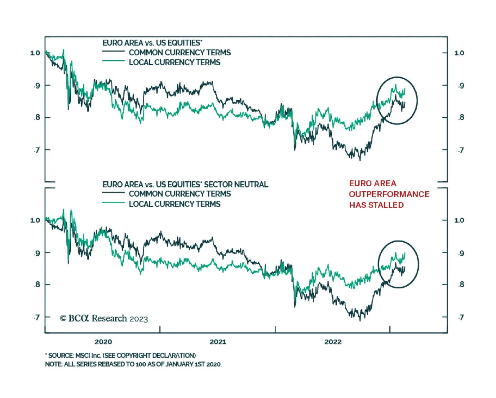 The four-month-long outperformance of Eurozone equities relative to US stocks has recently stalled. Multiple factors explain this dynamic. A strengthening US dollar reduces foreign gains when expressed in US dollars. Thus,…