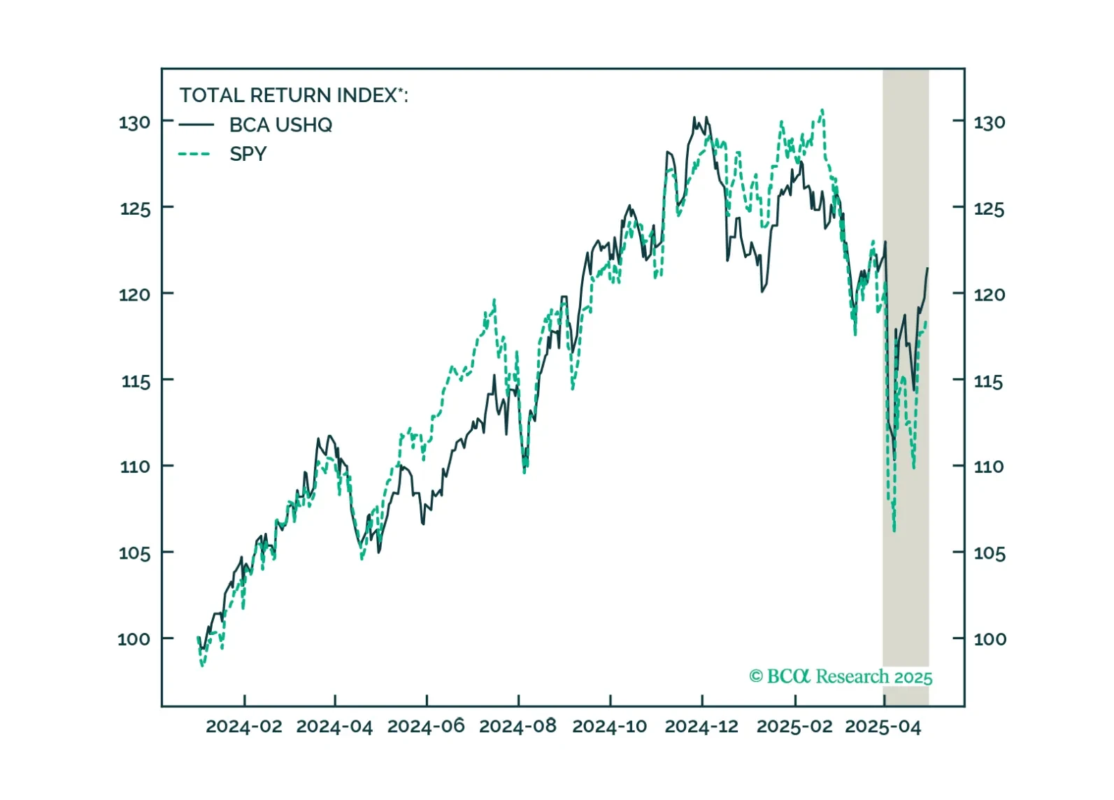 The US High Quality (USHQ) portfolio outperformed on the margin through April, returning -0.6%, whilst its SPY benchmark returned -1.2%. On a trailing three-month basis, performance remains robust vs. benchmark, with USHQ generating…