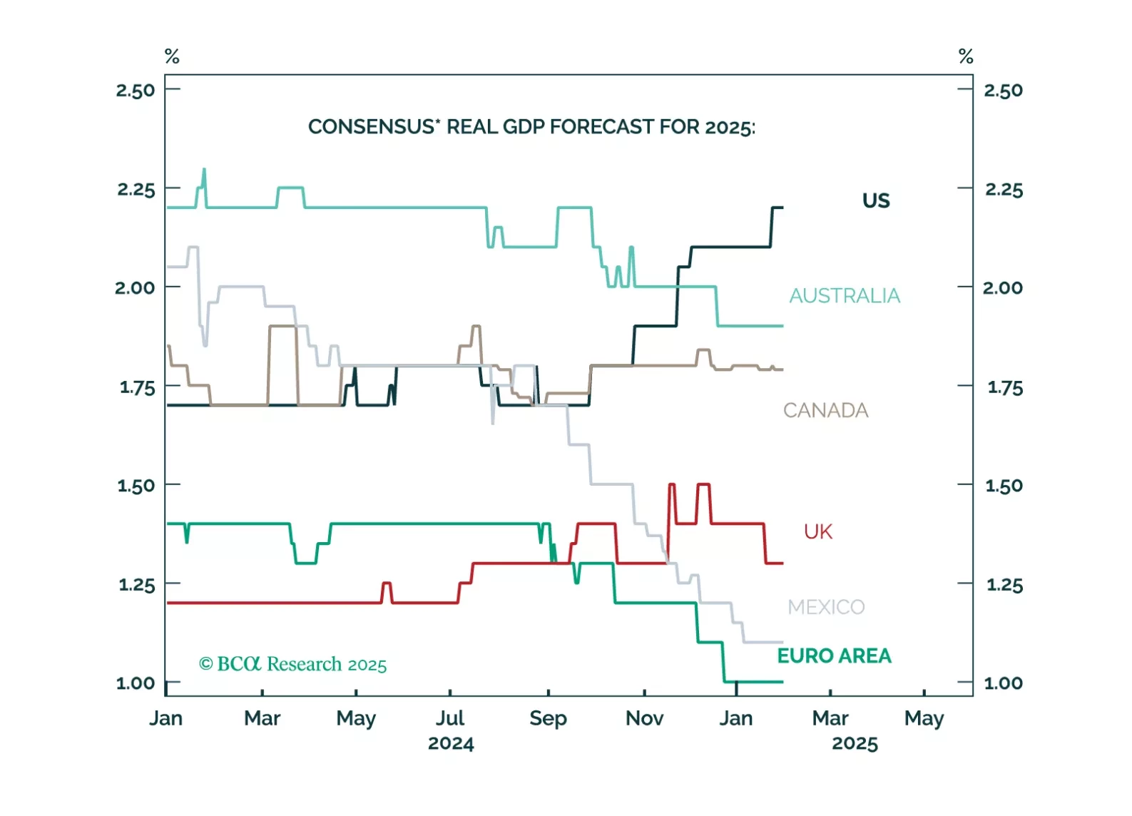 Markets and forecasters anticipate a “Golden Age” for Trump’s America, with US growth expectations soaring while the rest of the world lags. However, this extreme optimism means that there is a lot of room for disappointment. Cooling…