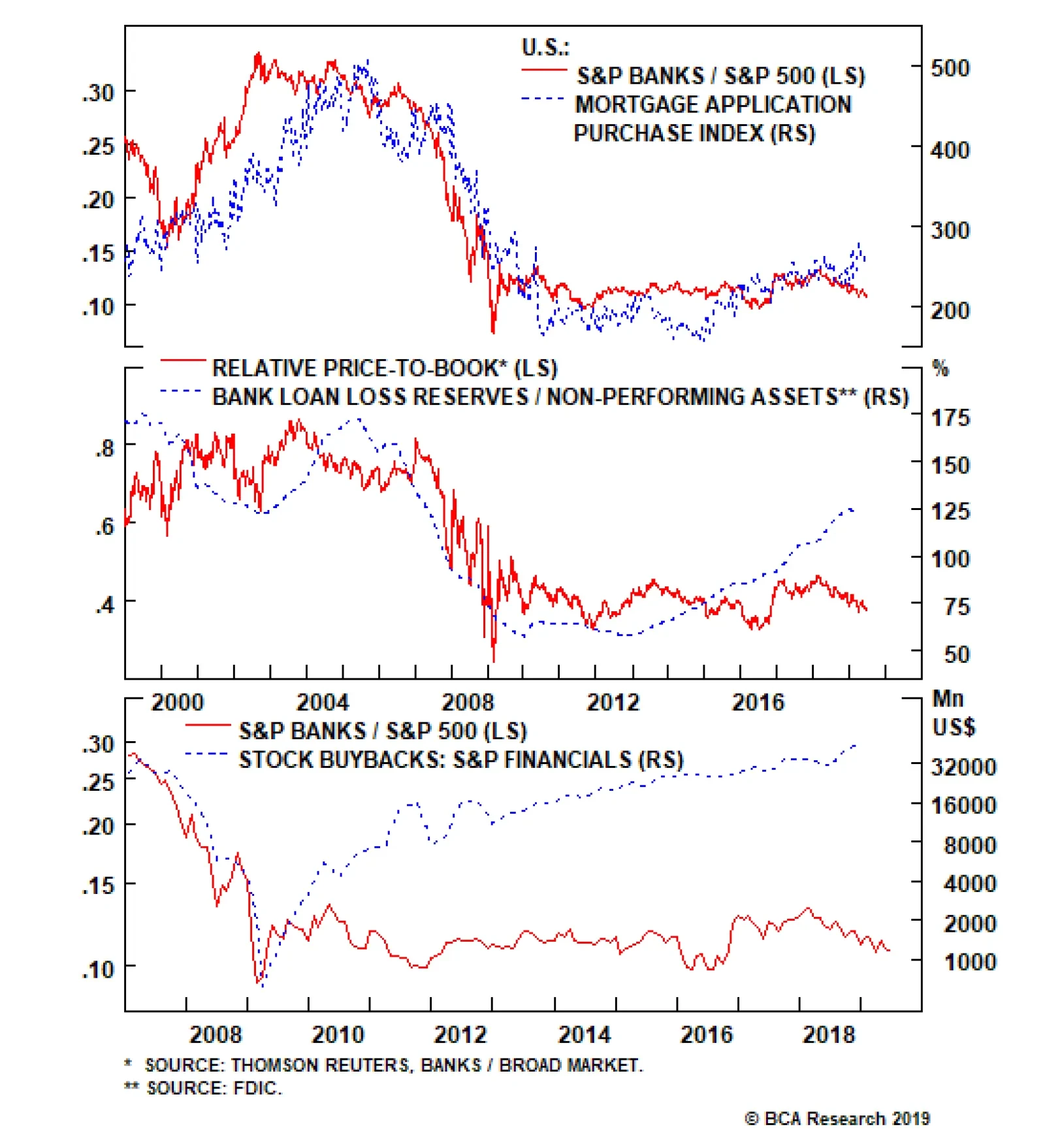 Our bank EPS growth model signals that bank EPS euphoria is misplaced. Nevertheless, four significant offsets prevent us from going for an outright downgrade. First, the 30-year fixed mortgage rate almost perfectly mimics the…