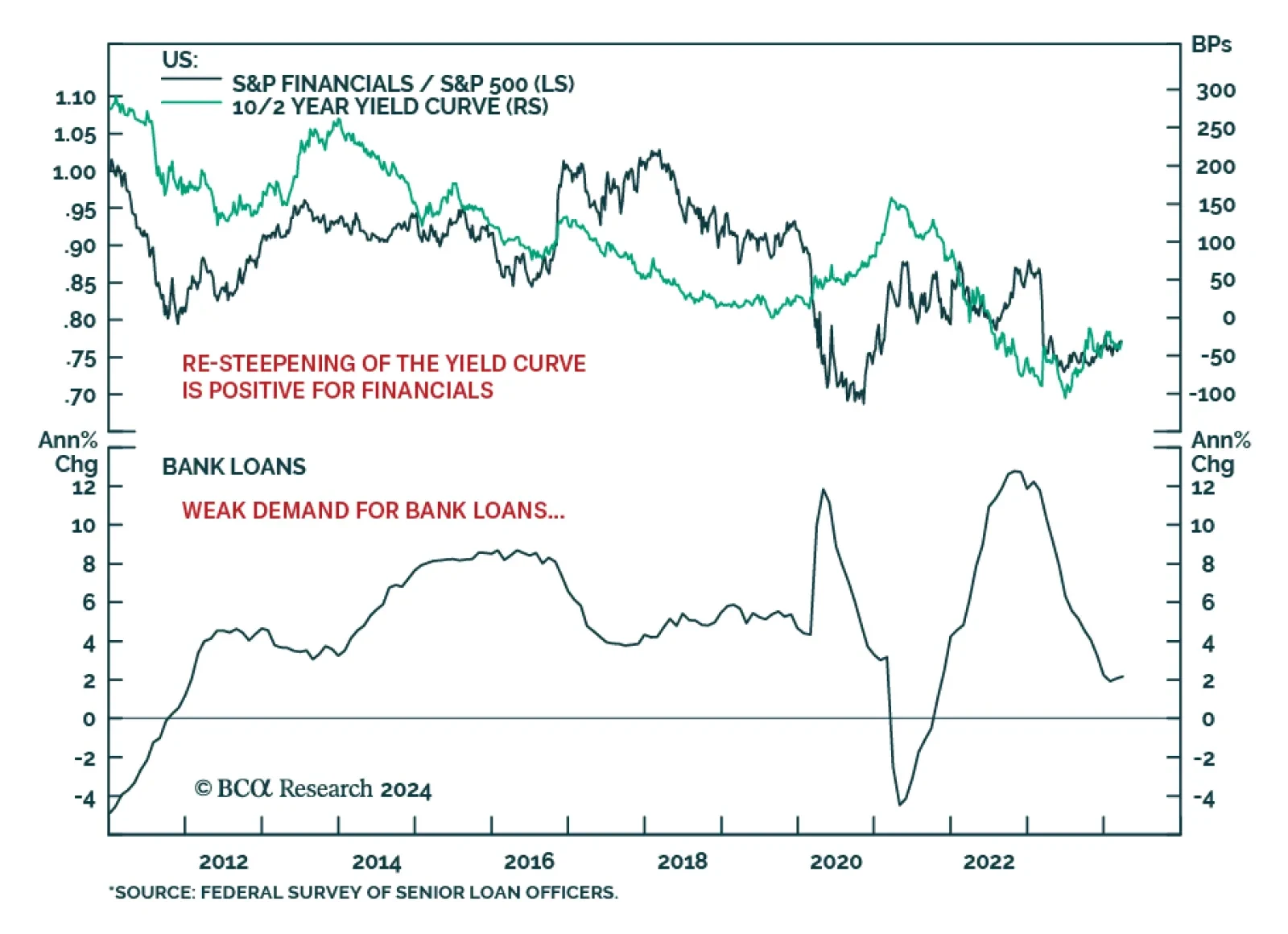 The steepening of the yield-curve powered the outperformance of the S&P 500 Financials relative to the overall market since the spring of 2023 banking crisis. This sector returned 30.1% over this period, against 27.3% for the…