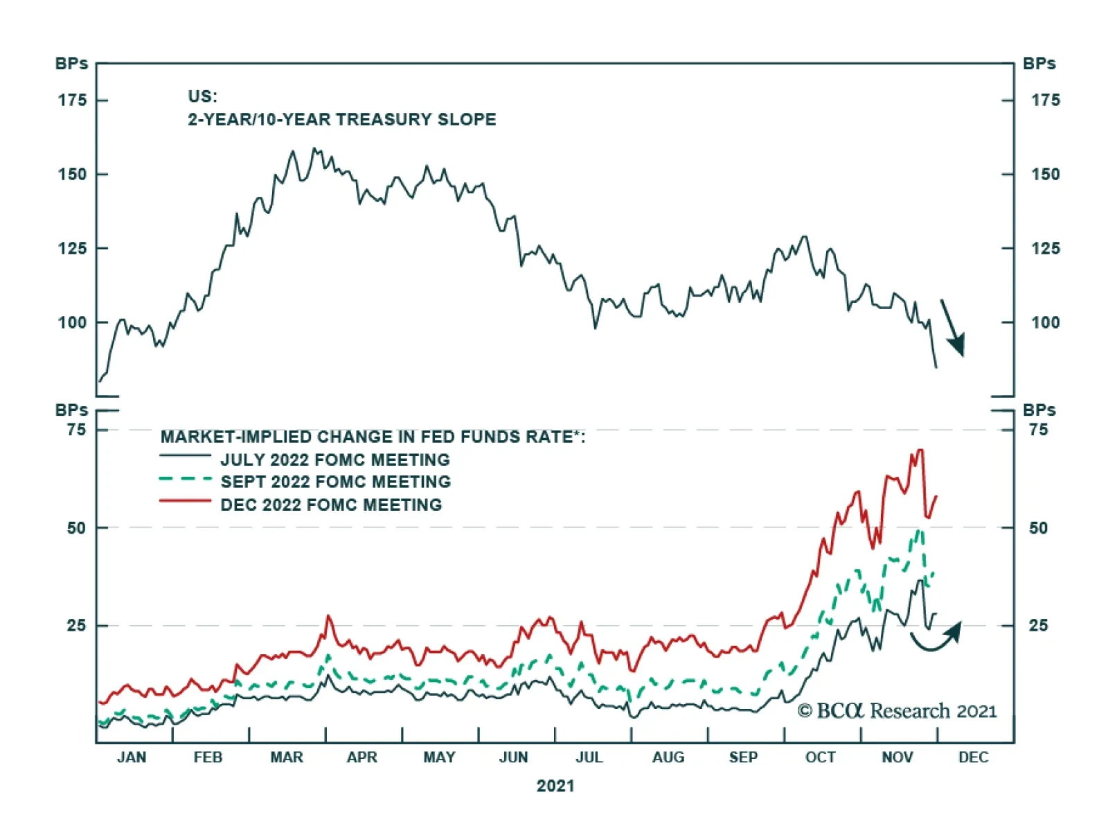 Highlights Fed: Until more is learned about the omicron variant, our base case view remains that the Fed will lift rates later than what is currently priced in the market. We think a September or December 2022 liftoff date is reasonable. Treasuries: Our main Treasury curve investment recommendations: below-benchmark portfolio duration and 2/10 curve steepeners, are not that sensitive to the timing of Fed liftoff. Both positions should be profitable whether the first rate hike occurs in June 2022 or December 2022. Corporates: Investors should remain overweight spread product versus Treasuries in US bond portfolios, maintaining a preference for high-yield corporates over investment grade. The recent bout of spread widening caused by expectations of more restrictive monetary policy and news about the omicron variant will reverse in the coming months. MBS: Agency MBS are unattractive relative to other US spread products, and current MBS valuations may understate the future pace of mortgage refi activity. Remain underweight Agency MBS within US bond portfolios. Feature Chart 1Curve Flattening Is Overdone
