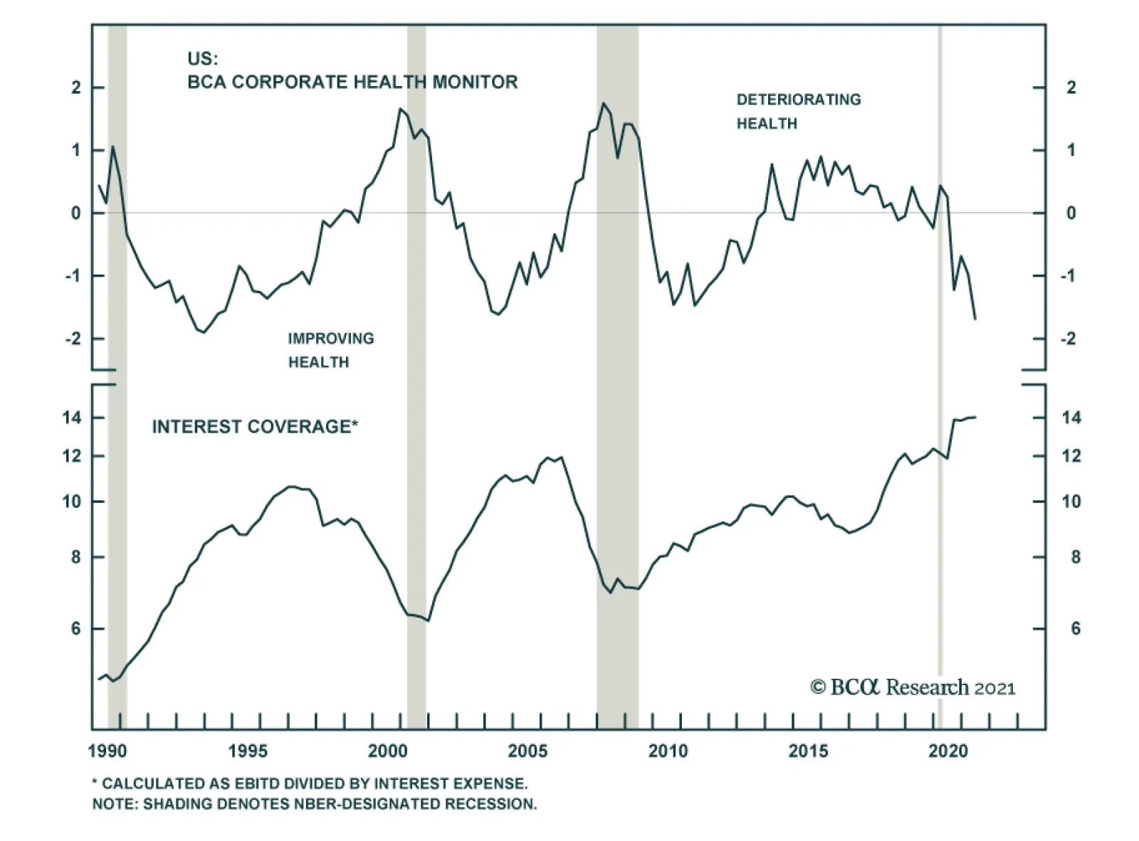 According to BCA Research’s US Bond Strategy service, investors should stay overweight spread product in US bond portfolios. Gross corporate leverage has plunged during the past few quarters. This drop explains why there have been so few corporate defaults…