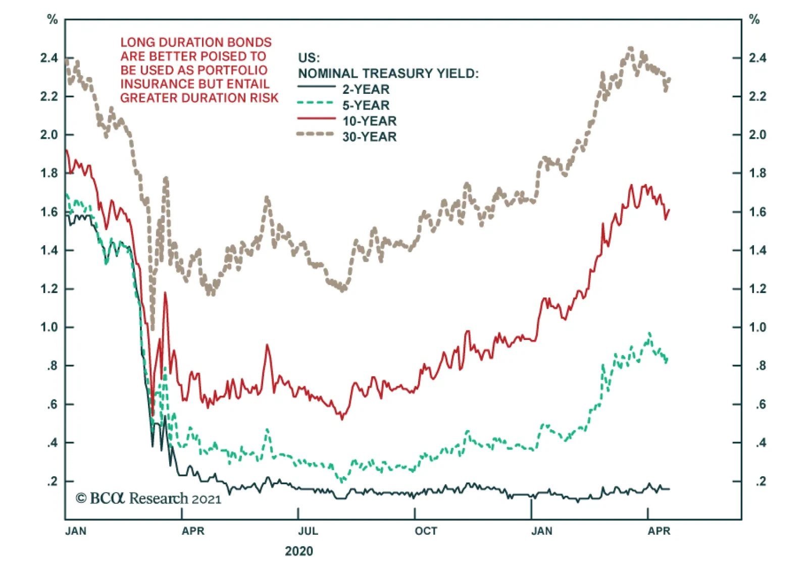 US Treasuries: The steady climb of US bond yields has left longer-maturity Treasuries in an oversold position. However, underlying growth and inflation momentum remains bond bearish and the Fed is likely to begin preparing the market later this year for a tapering of asset purchases in 2022. Maintain a medium-term defensive posture towards US Treasuries (below-benchmark duration and an underweight country allocation). Canada: The Canadian economy is gaining significant positive momentum, with an increased pace of vaccinations boosting optimism despite a third wave of COVID-19. We now see a growing risk of the Bank of Canada shifting to a less dovish policy stance sometime in the next few months, led by a tapering of its bond buying – perhaps even before the Fed does the same (Chart of the Week). Downgrade Canadian government bonds to underweight in global fixed income portfolios. US Treasuries: The Pause That Refreshes Chart 2UST Yield Uptrend Has Paused