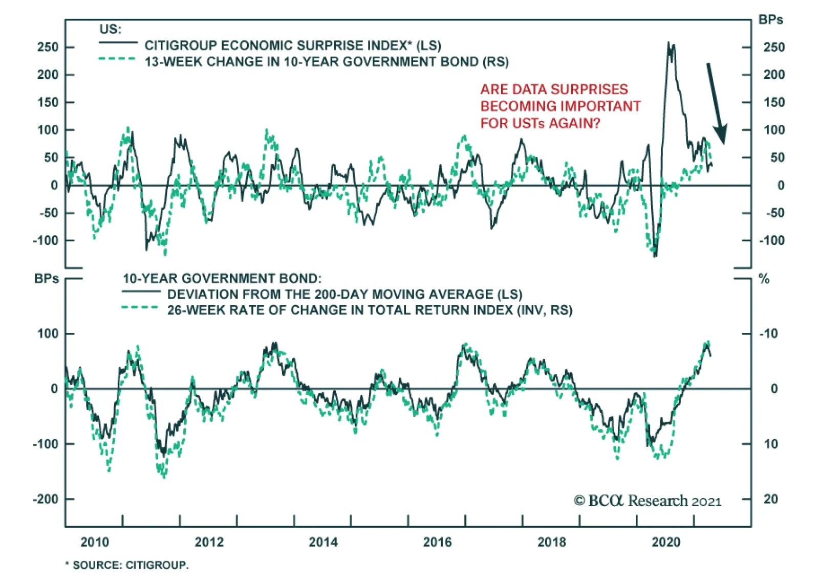 BCA Research’s Global Fixed Income Strategy service concludes that the cyclical rise in yields is not over yet. The overall flow of US economic data has been disappointing versus elevated expectations, as evidenced by the almost uninterrupted decline in…