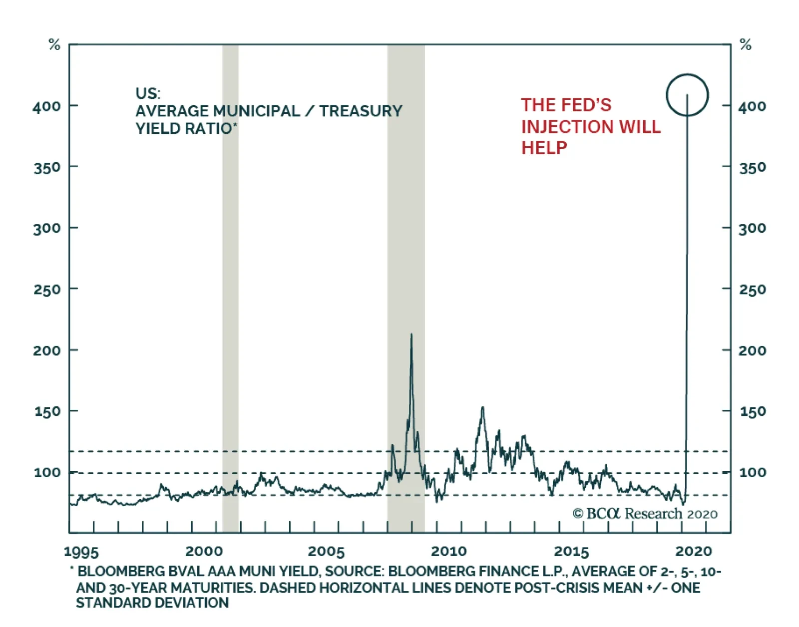 Municipal bonds are trading at their largest spread to Treasury bonds ever. Munis should be cheap, as cities will suffer large costs and tax losses in response to the COVID-19 crisis. However, the current pricing goes beyond this as the Federal government…