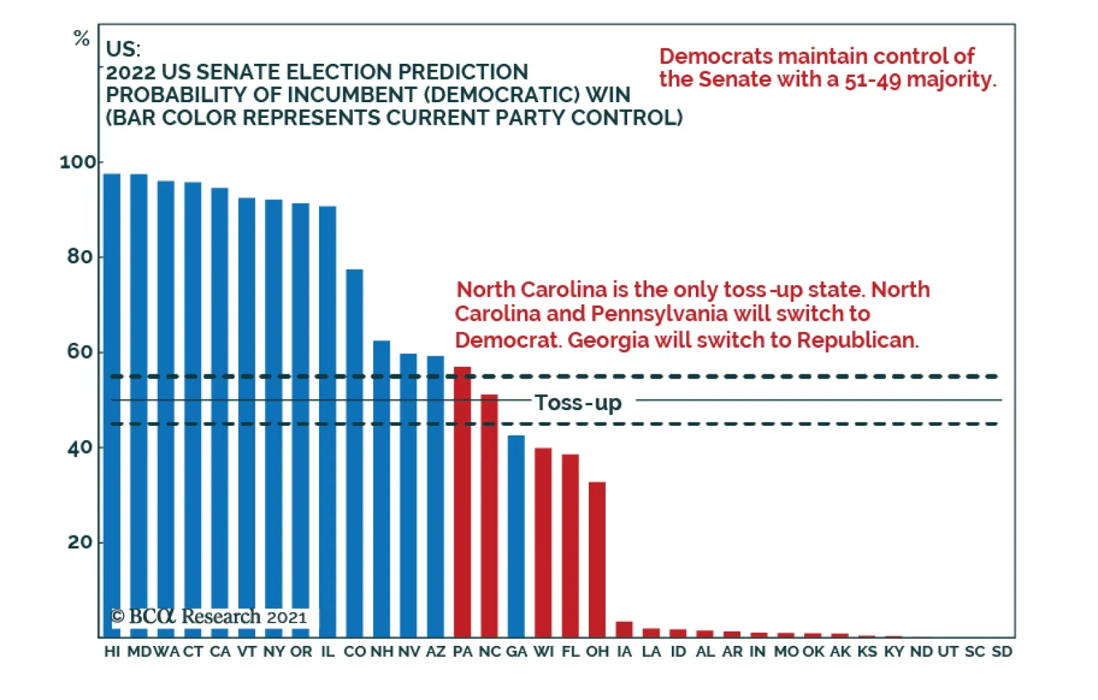 BCA Research’s US Political Strategy has just introduced its revised Quantitative Senate Election model. The six-variable model measures the probability of the incumbent party (Democratic Party) retaining the Senate in the…