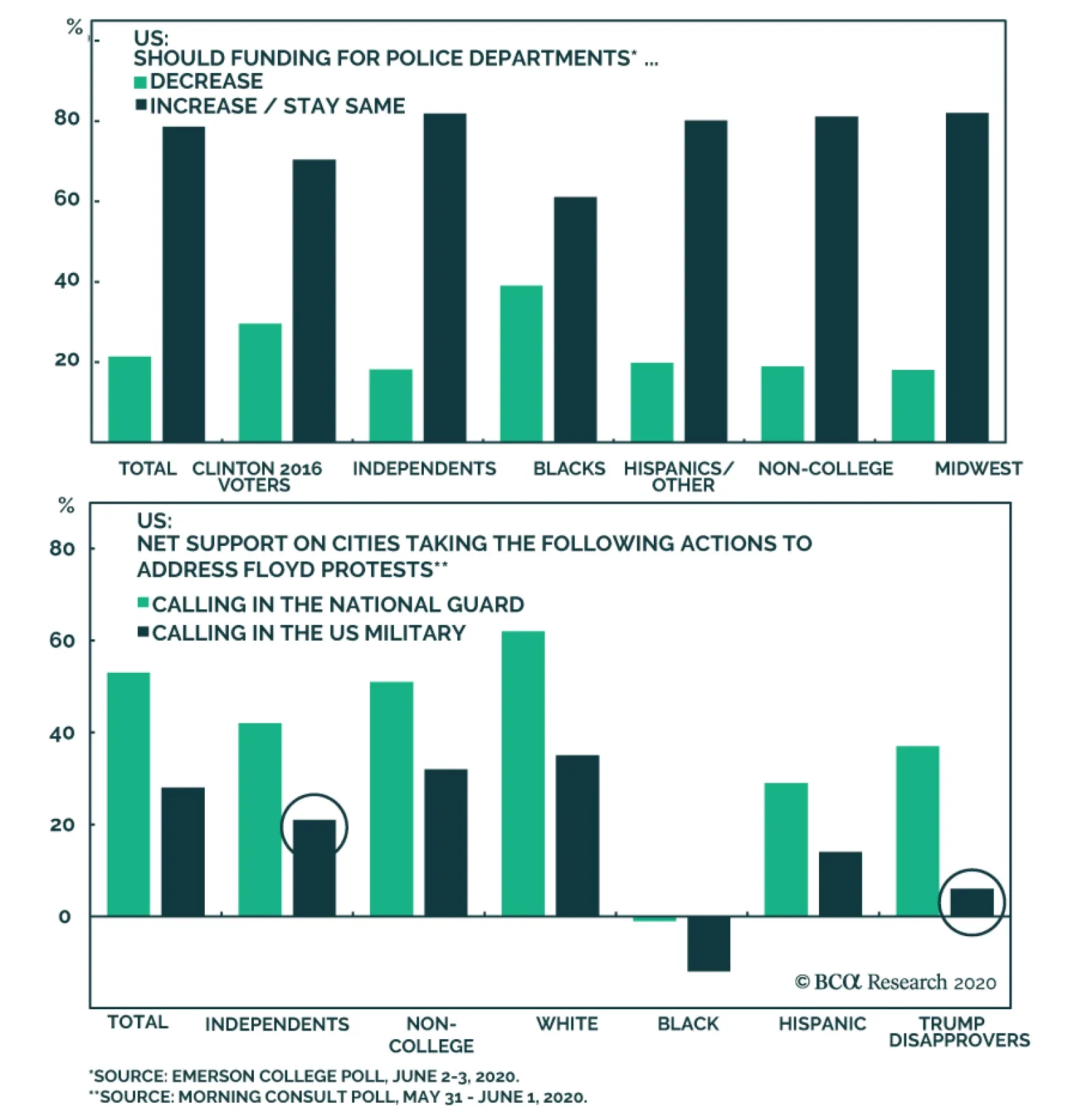 BCA Research's Geopolitical Strategy service believes that there is a possibility that Trump could benefit from his pitch as the candidate of law and order if unrest continues, violence worsens, and his actions are deemed to…