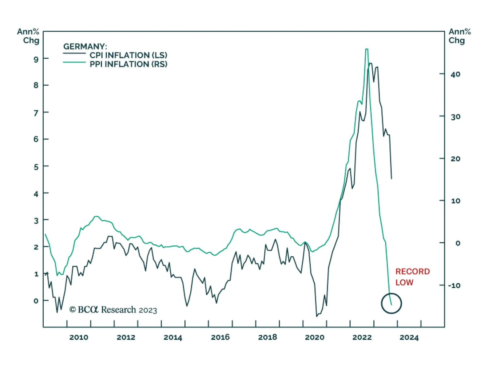 Collapsing German producer prices continue to indicate that inflationary pressures are moderating in the Eurozone. Total PPI declined by a record 12.6% y/y in August following a 6.0% y/y drop in July. While the annual decline…