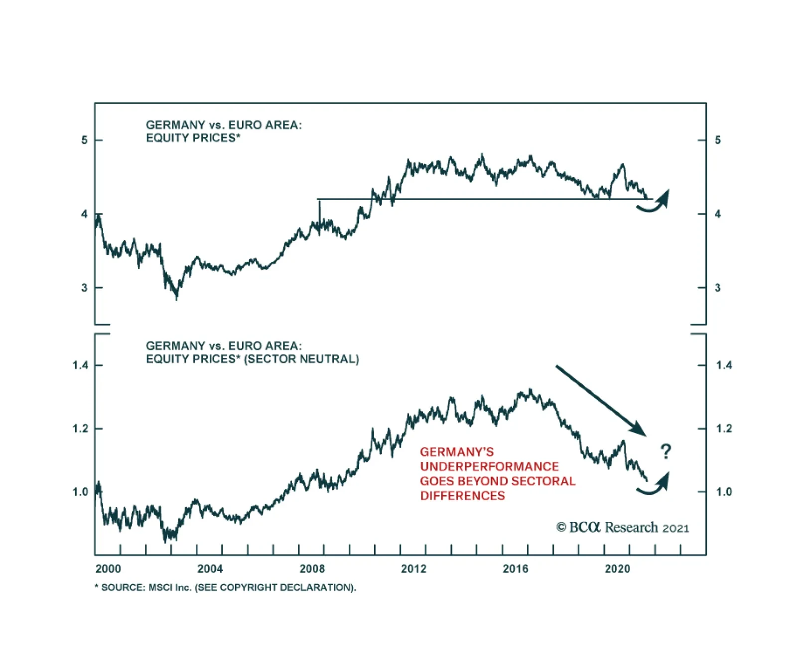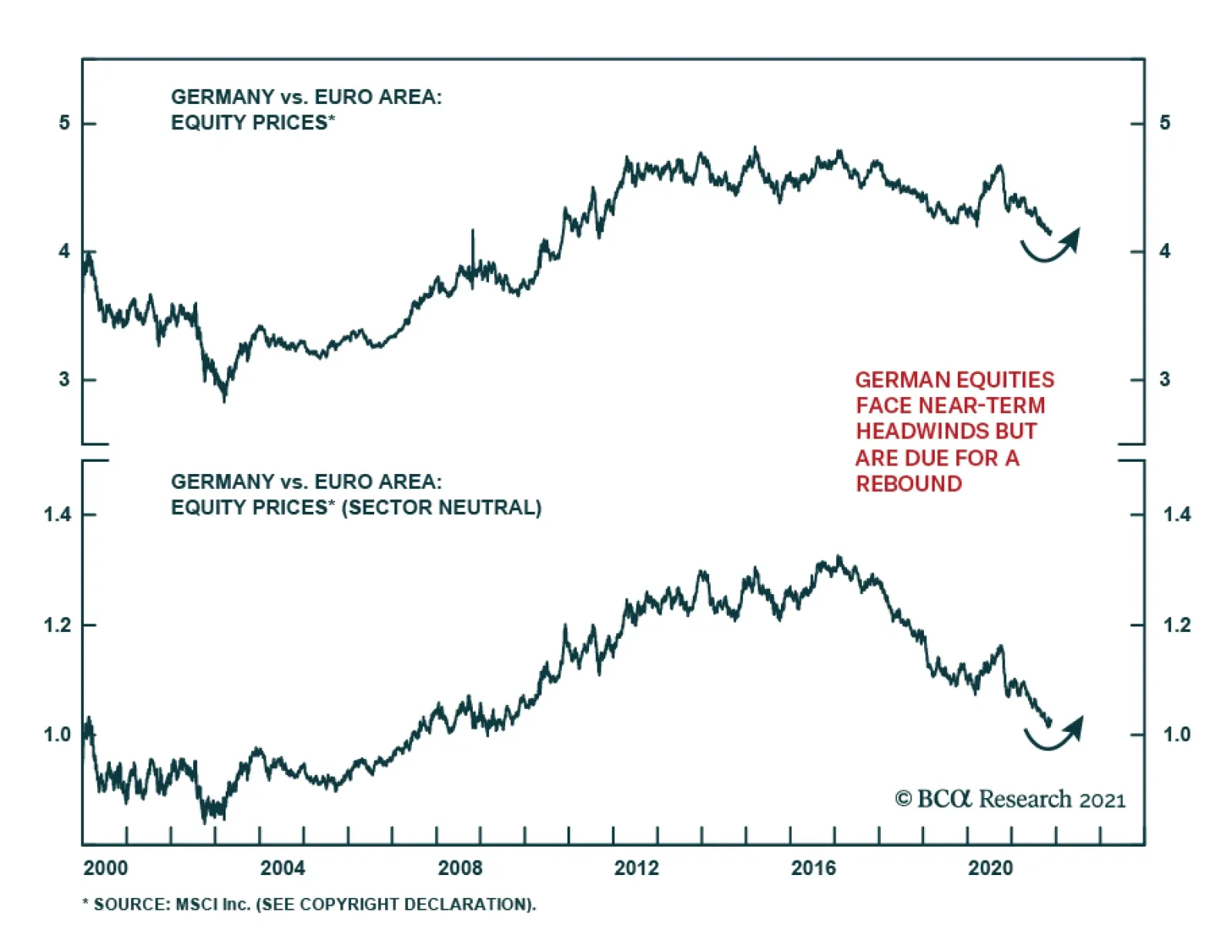 BCA Research’s European Investment Strategy & Geopolitical Strategy services conclude that German stocks are a bargain. During the past 5 months, the German MSCI index has underperformed the rest of the Eurozone by 6.2…